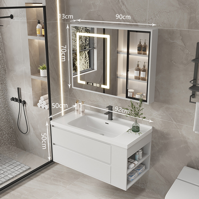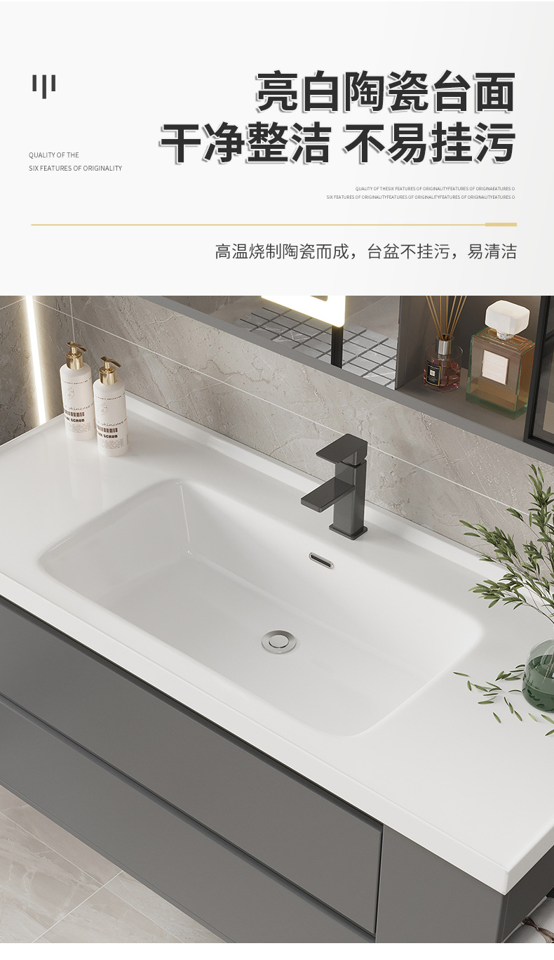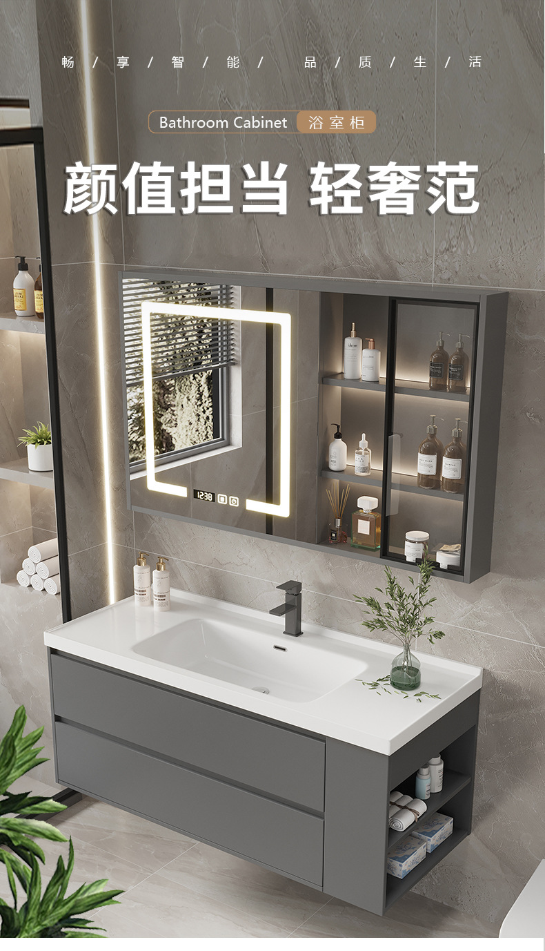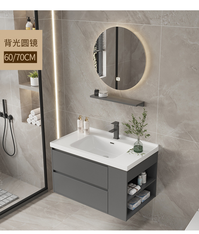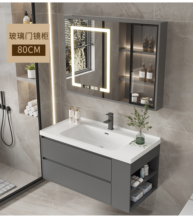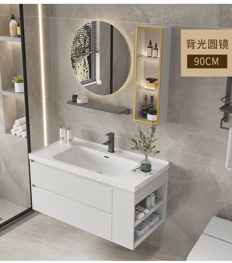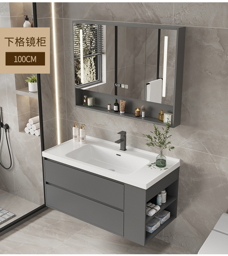 현대 미니멀리스트 욕실 캐비닛 조합 욕실 세라믹 통합 라이트 럭셔리 솔리드 우드 워시 페이스 분지 워시 테이블 세트스토어 가기