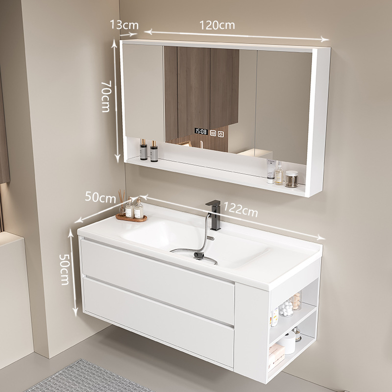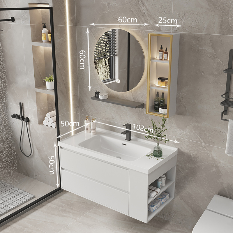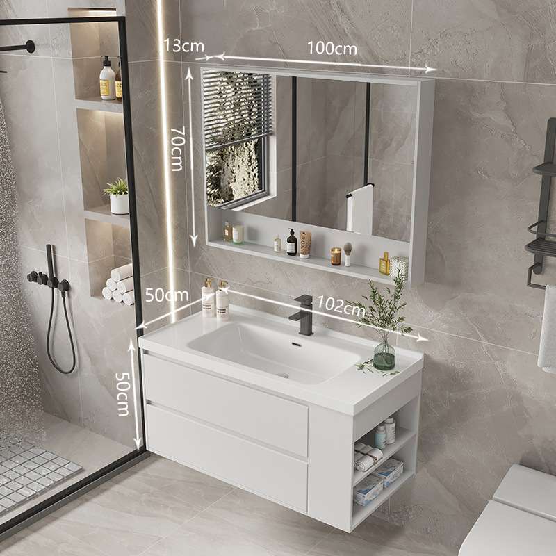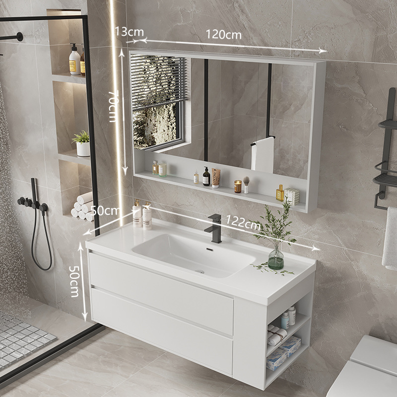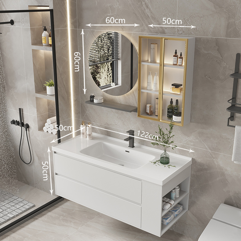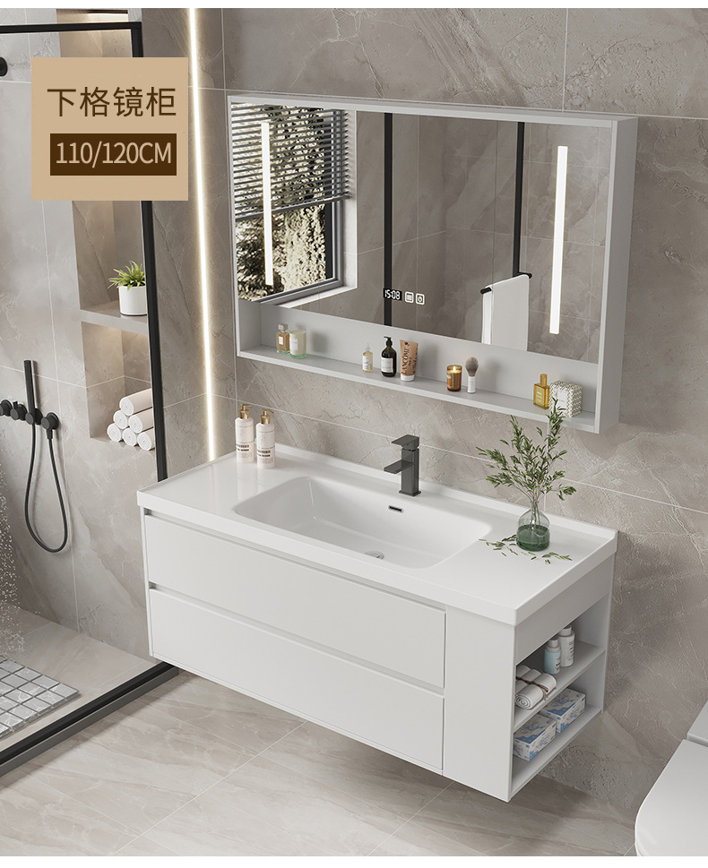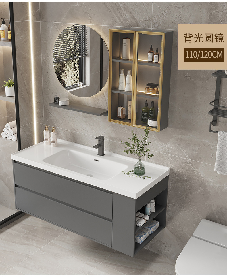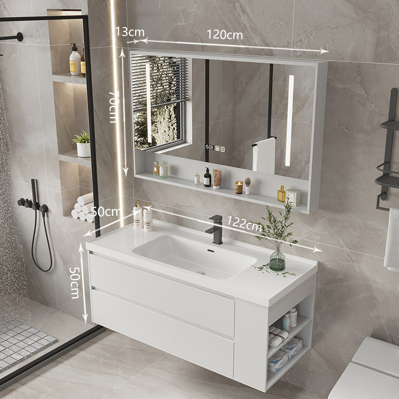 현대 미니멀리스트 욕실 캐비닛 조합 욕실 세라믹 통합 라이트 럭셔리 솔리드 우드 워시 페이스 분지 워시 테이블 세트스토어 가기