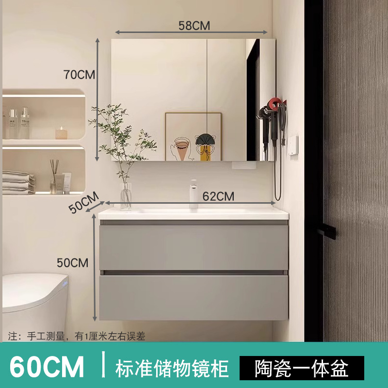 • 60cm 표준 거울 캐비닛은 설치와 함께 제공됩니다.