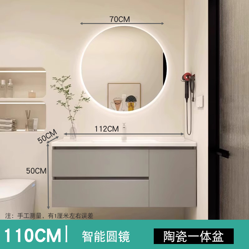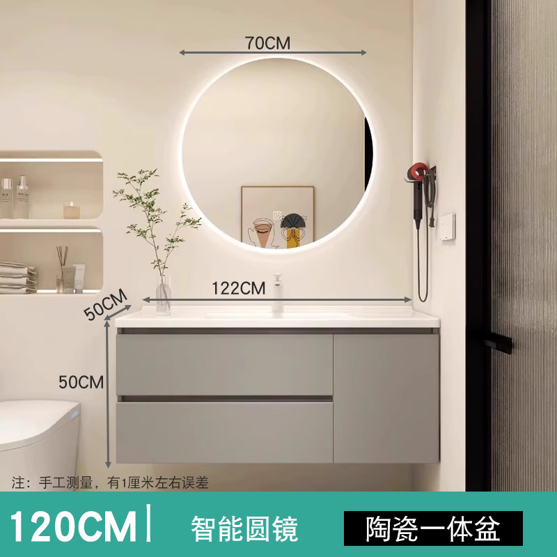 가벼운 고급 욕실 캐비닛 통합 세라믹 분지 단단한 나무 지능형 간단한 화장실 세척 분지 캐비닛 조합스토어 가기