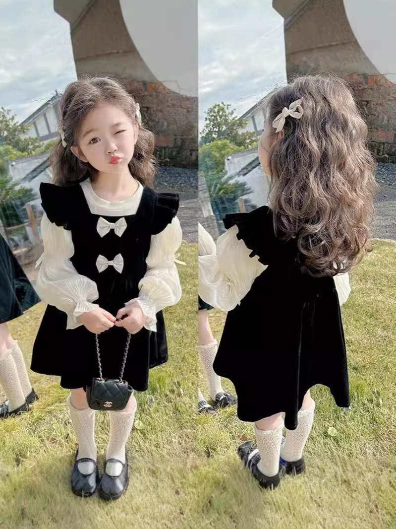 소녀 세트 가을 새로운 한국 버블 슬리브 티셔츠 공주 조끼 스커트 2 조각 어린이 헤어 세트