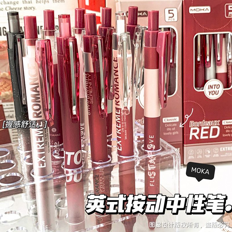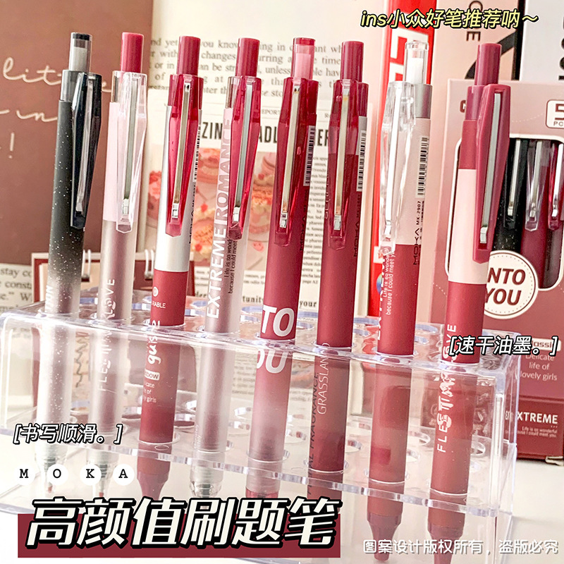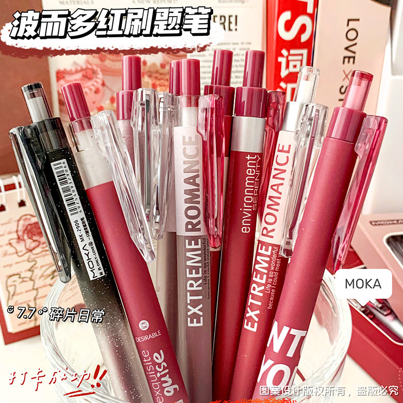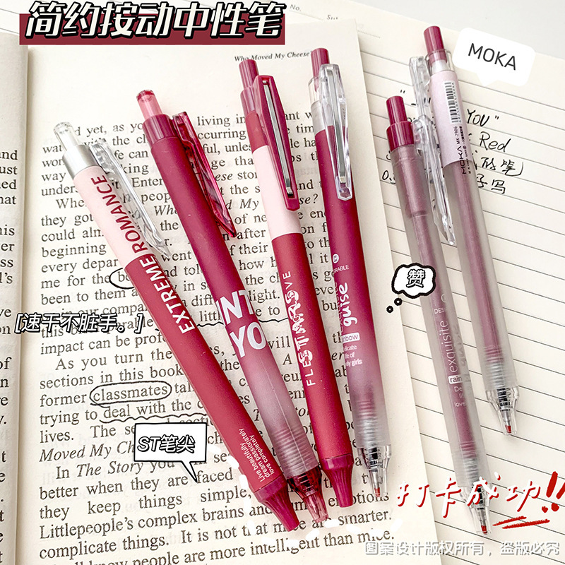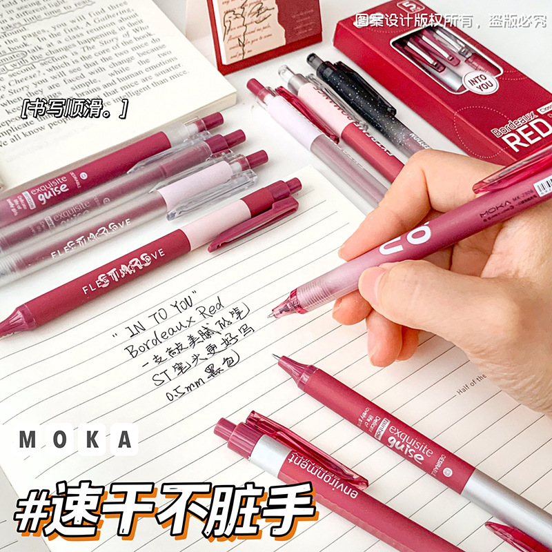 보르도 레드 새 프레스 펜 ST 펜 팁 학생 높은 색상 값 브러시 펜 프레스 젤 펜 다크 레드 0.5