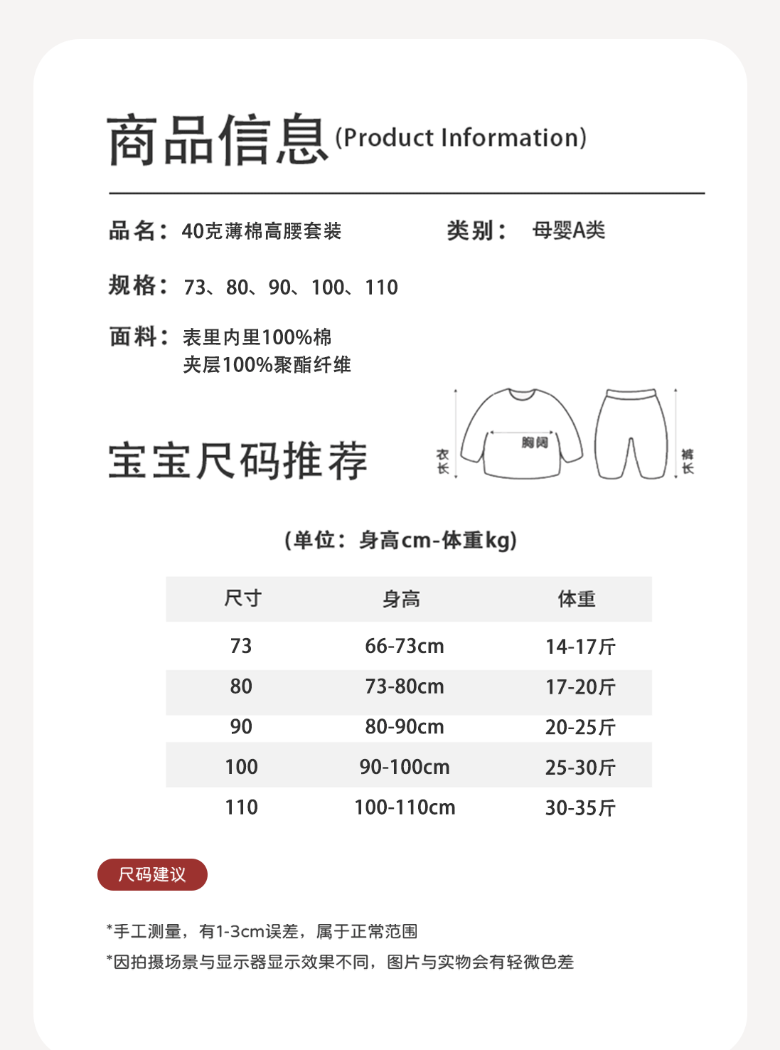 안양 유아복 가을 겨울 속옷 세트 순면 무봉제 40g 얇은 면 남녀 아기용 하이웨이스트 홈웨어