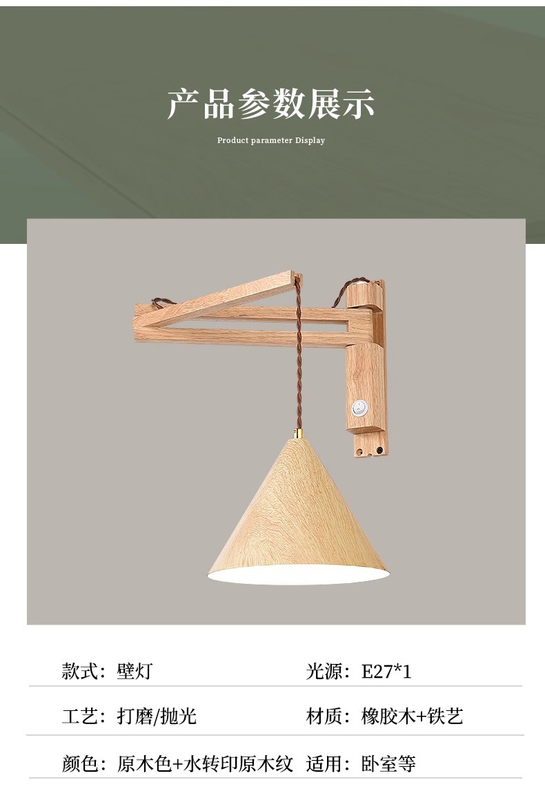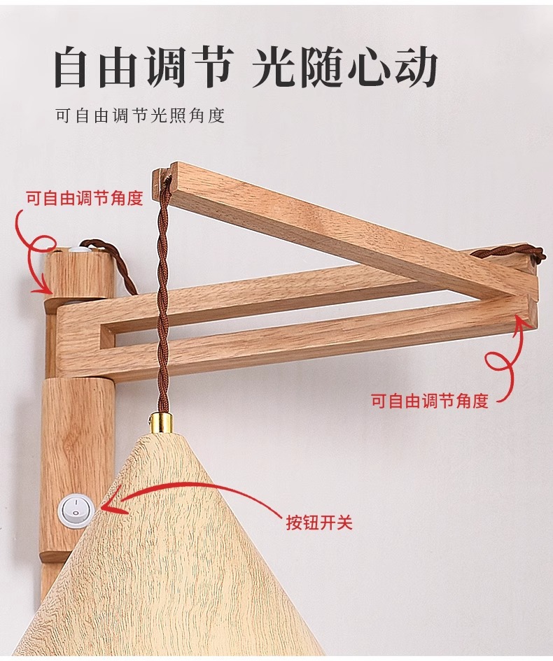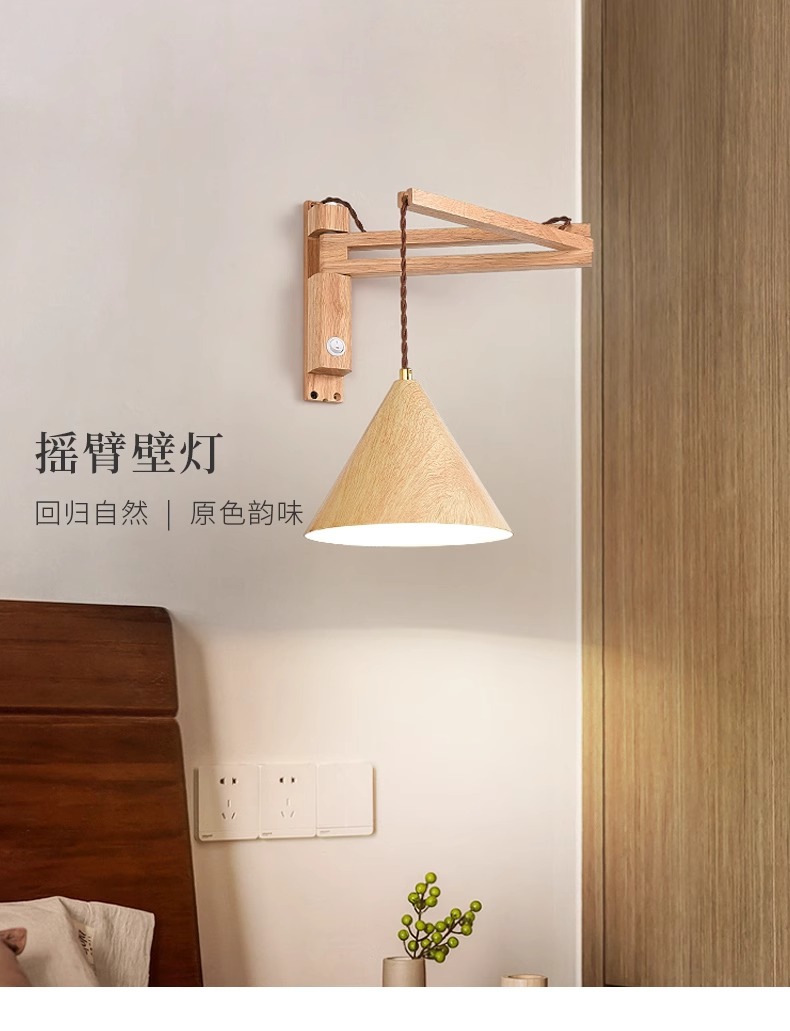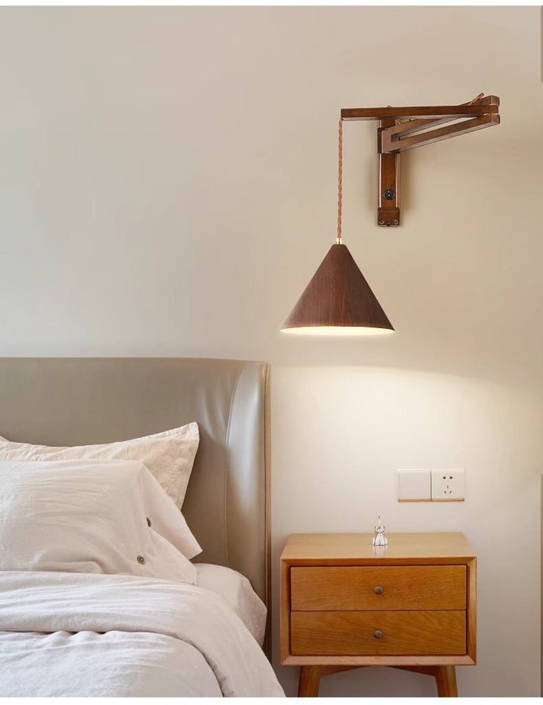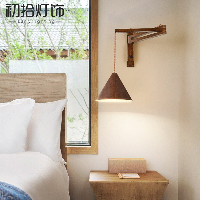 미국 레트로 침실 침실 램프 로커 벽 램프 블랙 호두 컬러 솔리드 우드 독서 변위 침묵하는 바람 그물 빨간 벽 램프스토어 가기