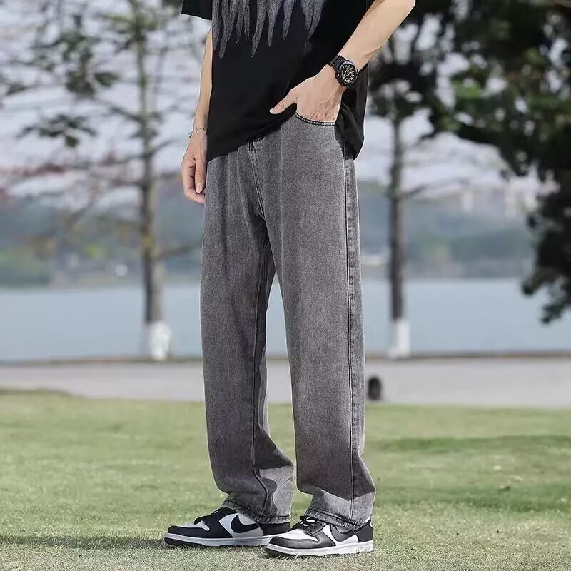 새로운 청바지 남성 바지 봄과 가을 유행 홍콩 스타일 느슨한 스트레이트 바지 캐주얼 청바지