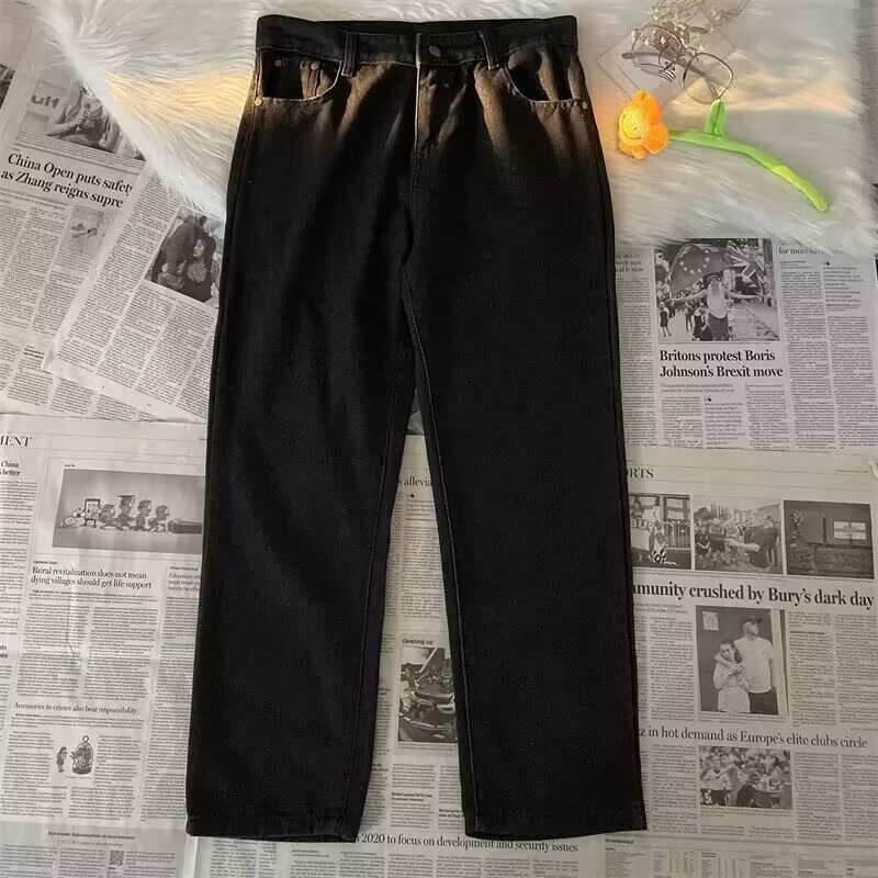 새로운 청바지 남성 바지 봄과 가을 유행 홍콩 스타일 느슨한 스트레이트 바지 캐주얼 청바지스토어 가기