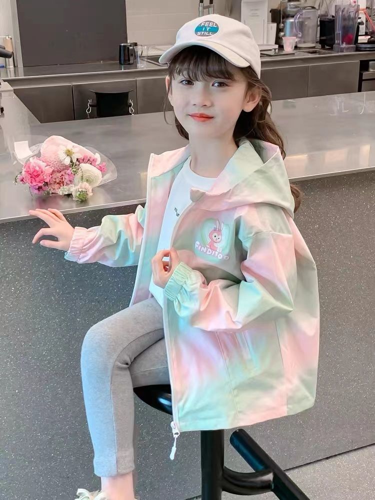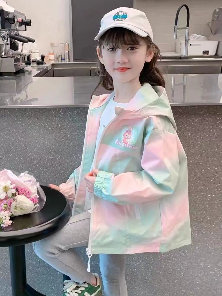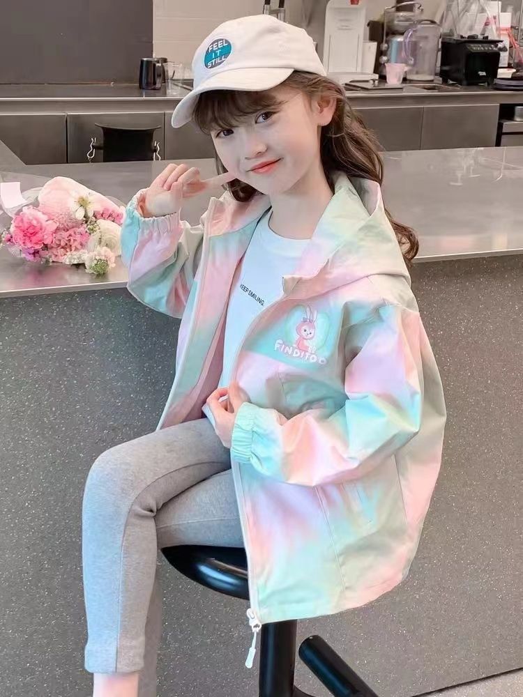 여자 봄 재킷 2025 새로운 스타일 어린이 재킷 봄과 가을 만화 소녀 후드 재킷 탑스토어 가기