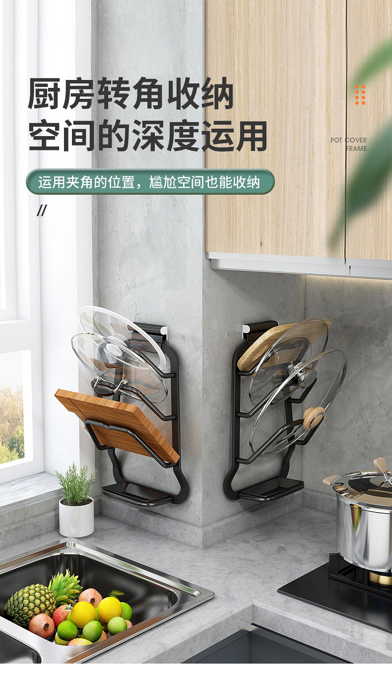 국경 간 주방 다층 보관 랙 공간 알루미늄 천공되지 않은 냄비 커버 주방 보관 선반 냄비 커버 보편적 인 벽걸이 냄비스토어 가기