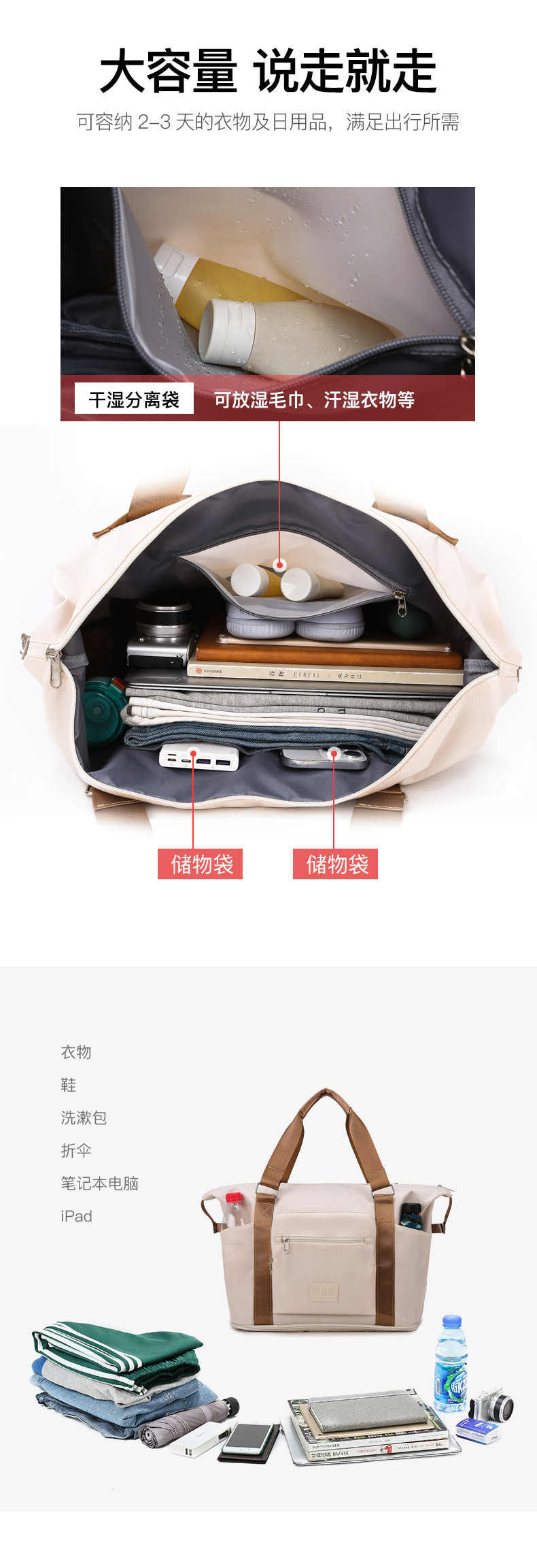 대용량 확장 단거리 여행 가방 슬리브 타이로드 경량 접이식 수하물 가방 건조하고 젖은 분리 임산부의 적시 가방