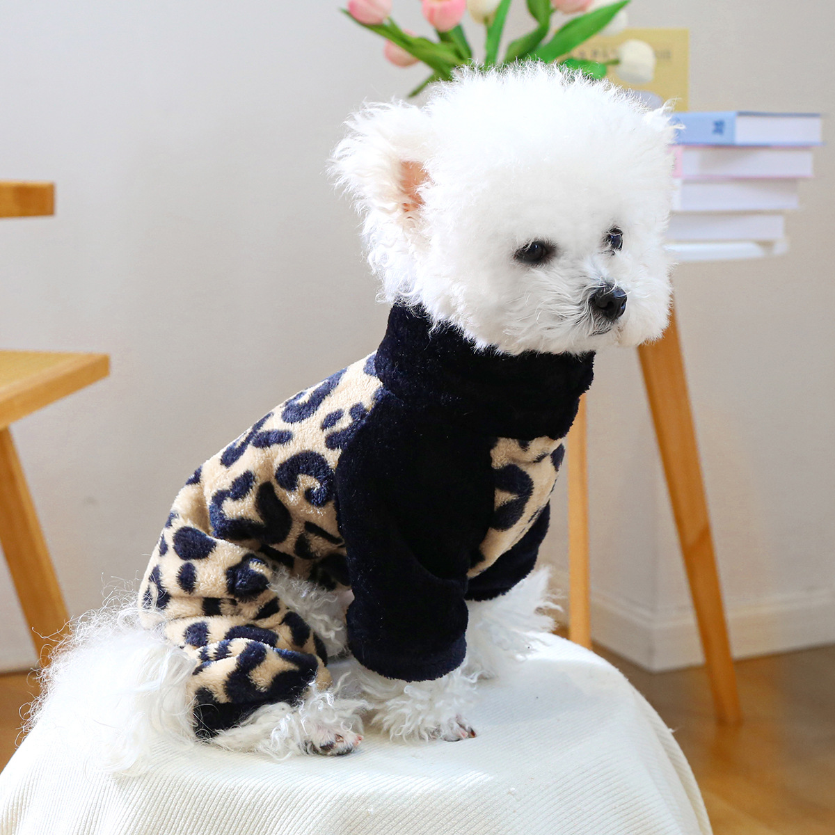 • 레오파드 프린트 플란넬 네발 슈트