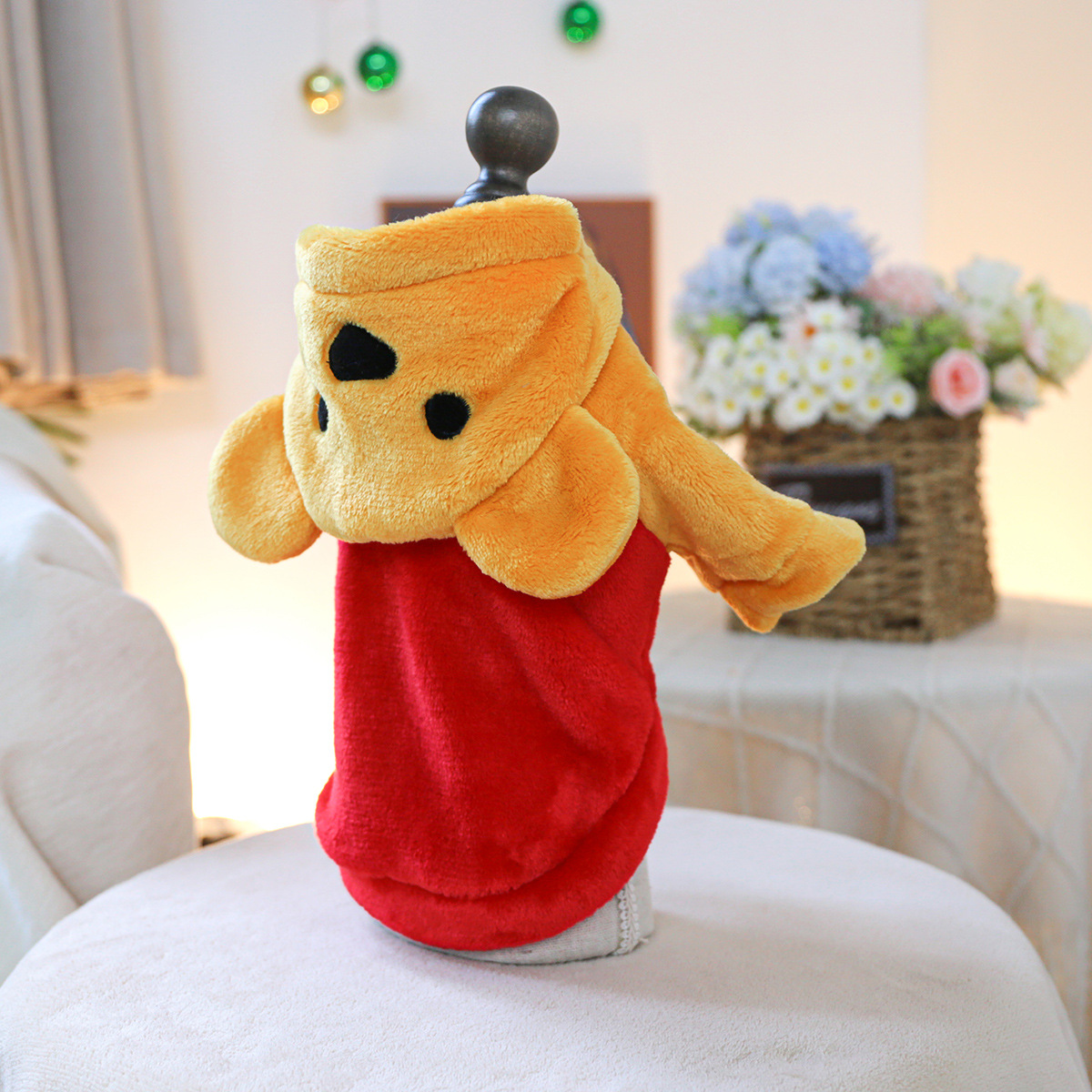 • 짧은 플란넬 변신 의상 - 빨간색과 노란색 곰
