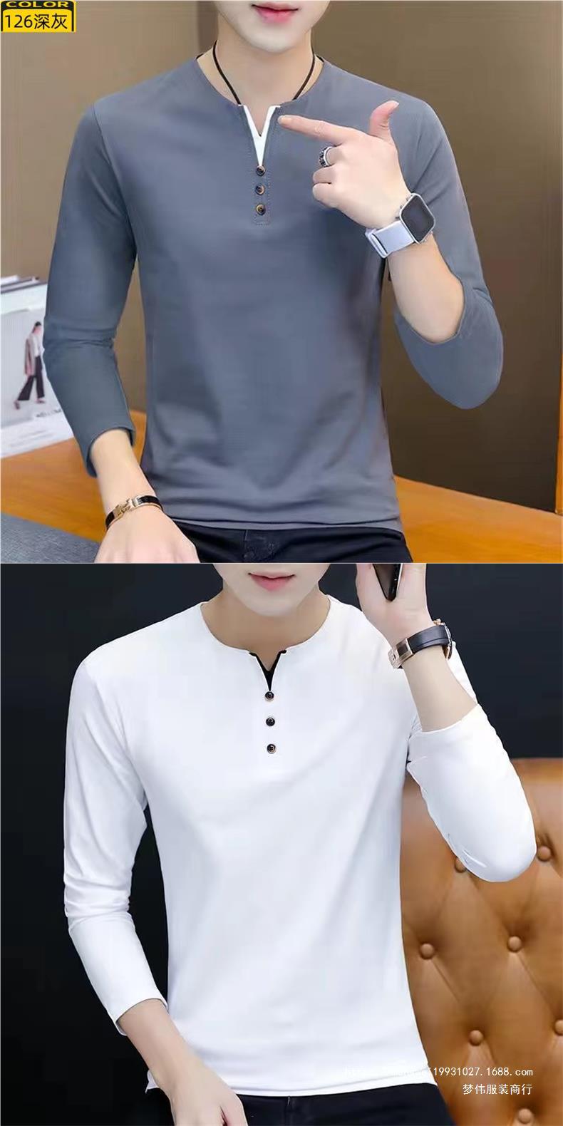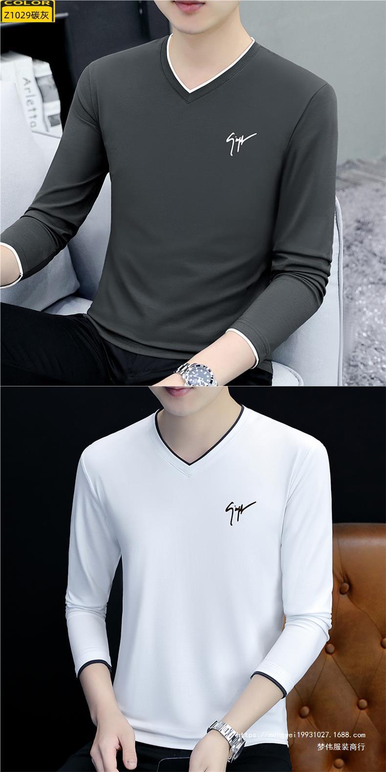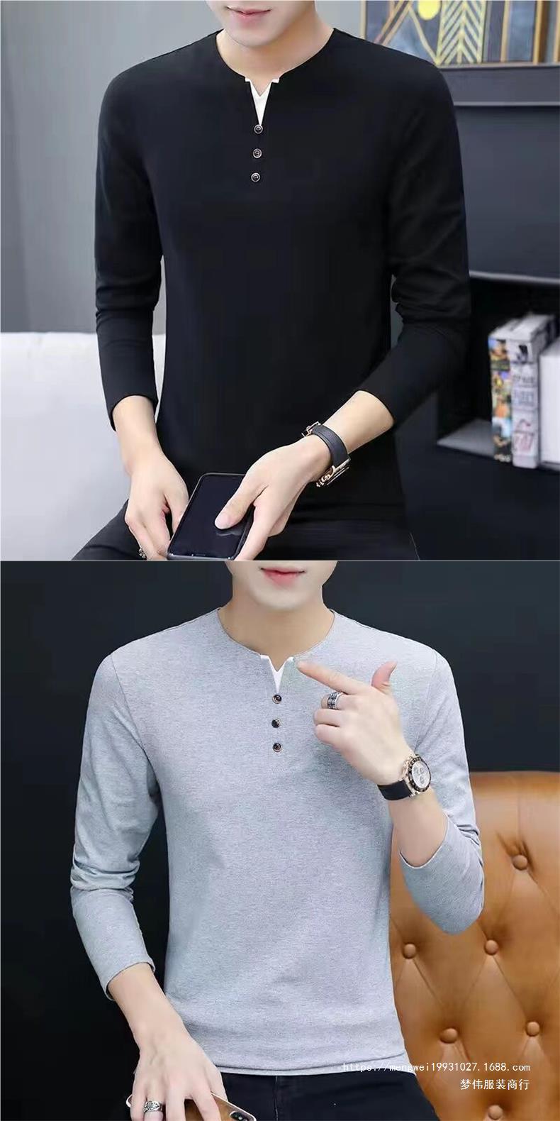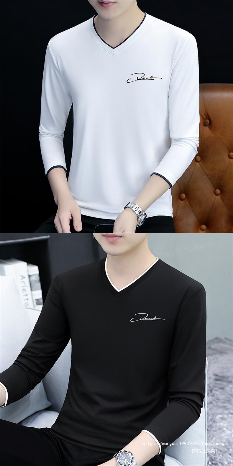 면 남자 긴팔 티셔츠 봄 옷 가을 옷 내부 남자의 2024 새로운베이스 셔츠 inst Mengwei