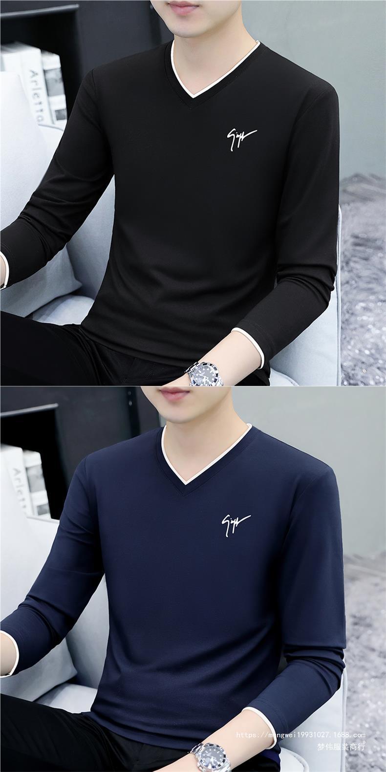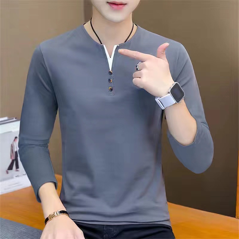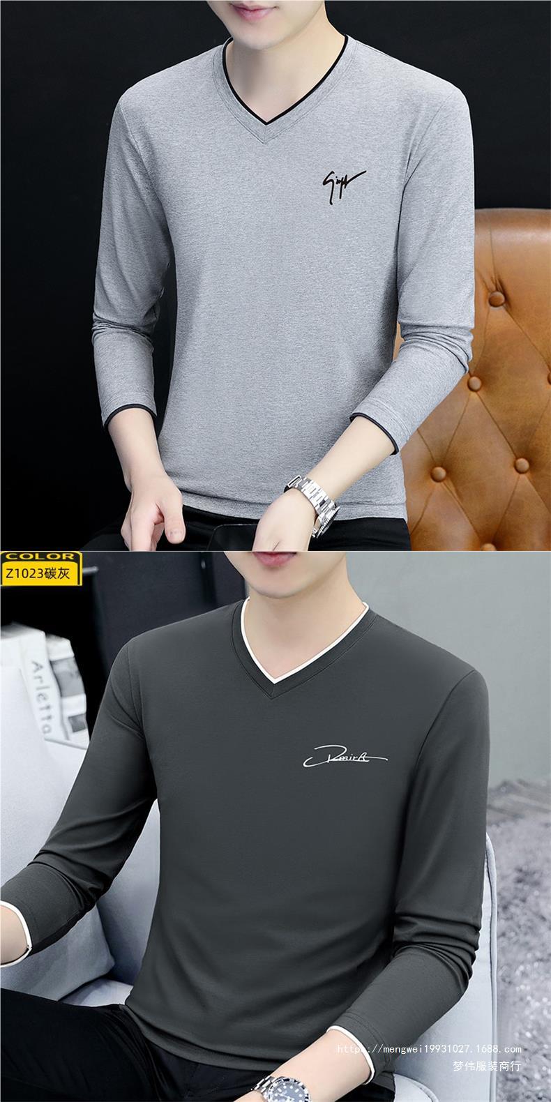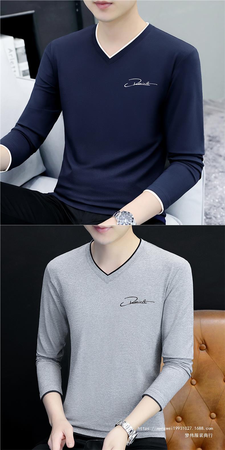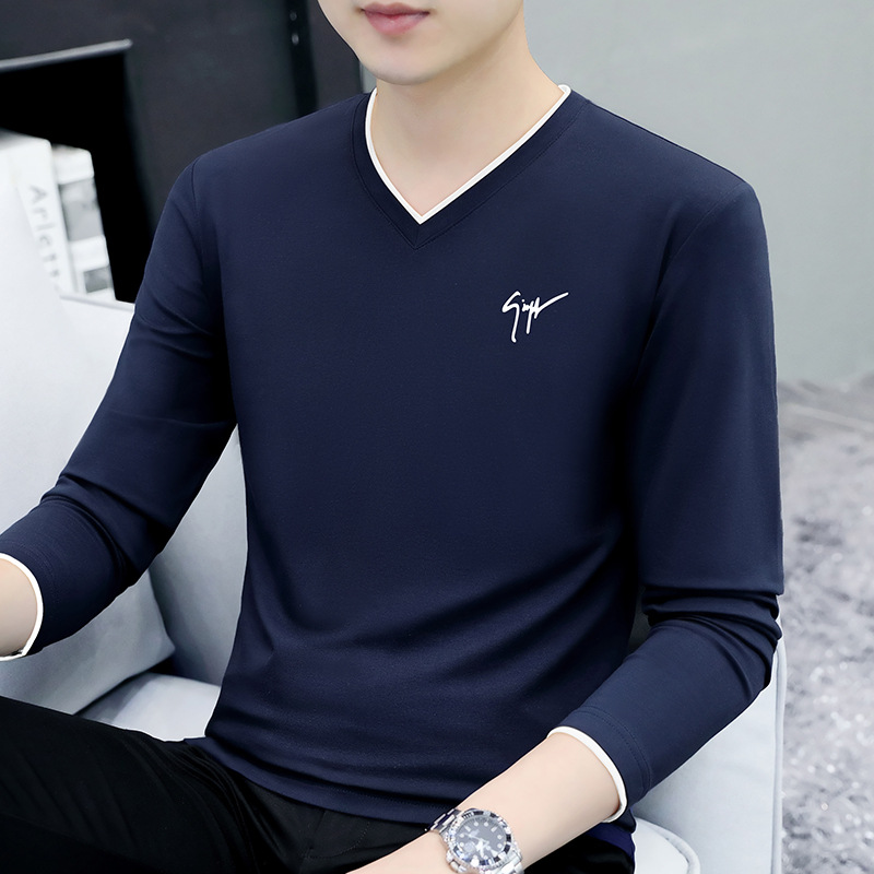 면 남자 긴팔 티셔츠 봄 옷 가을 옷 내부 남자의 2024 새로운베이스 셔츠 inst Mengwei