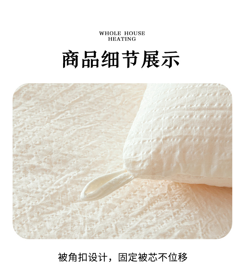 3.买前须知,由于填充物是有大型机器梳理成整张棉的,所以重量有时候会有误差,被子净重量4斤的被子重量在3.7斤以上,6斤的5.6斤以上,8斤的7.6斤以上,10斤的被子9.6斤以上均为正常,感谢您的理解,祝您购物愉快