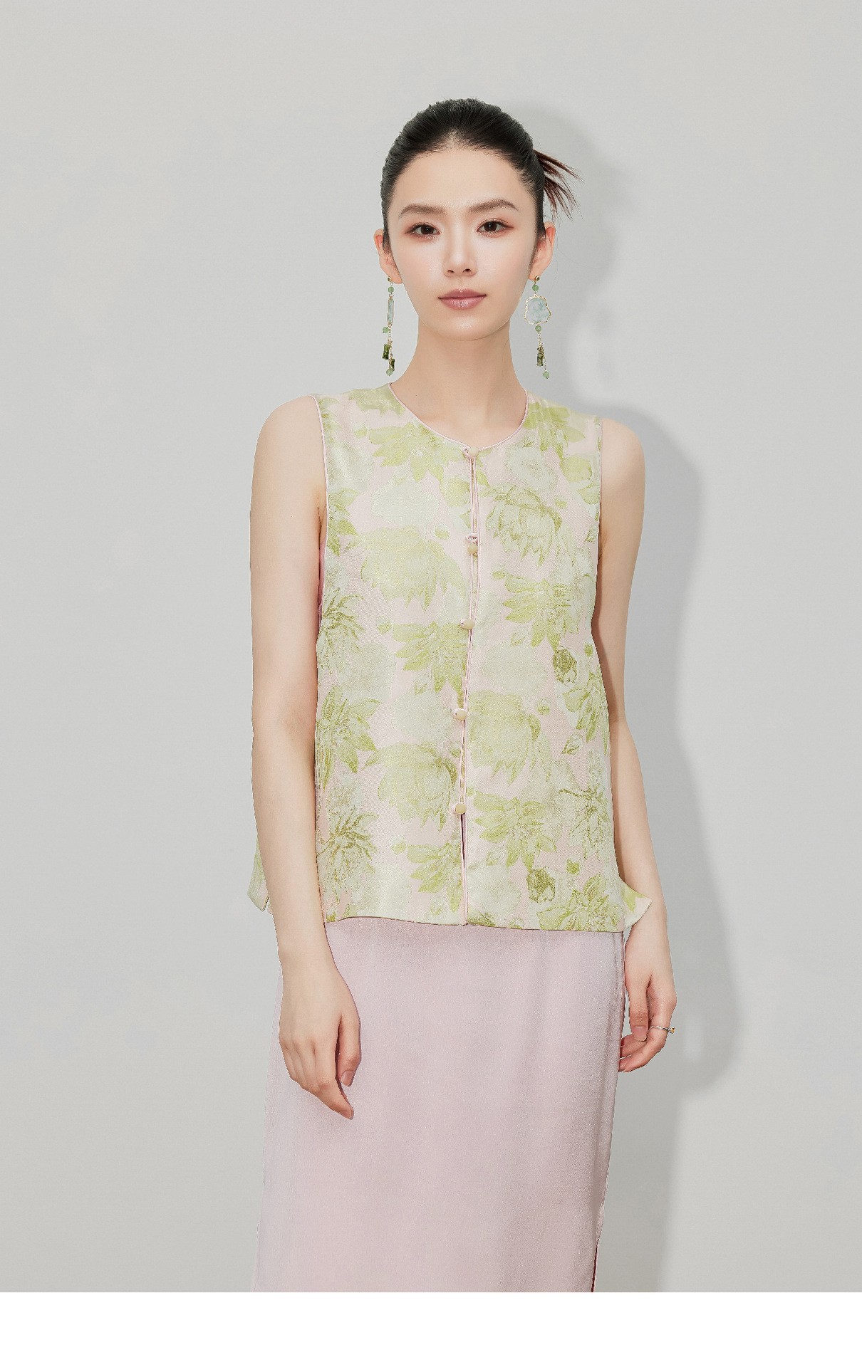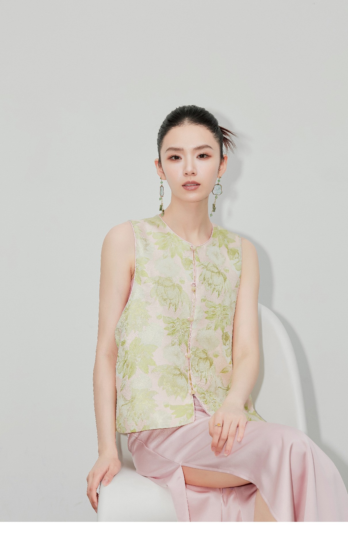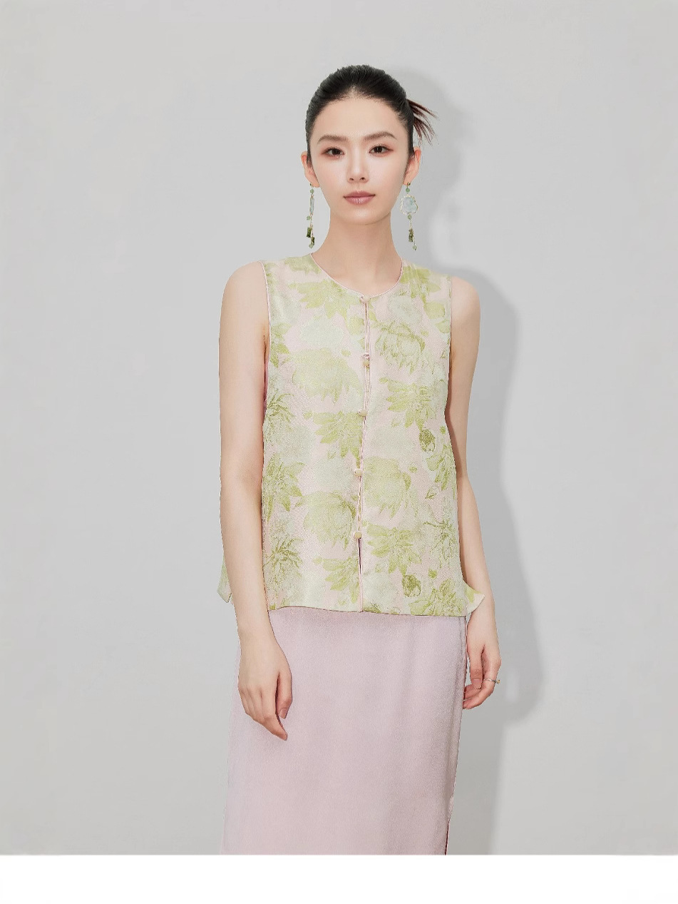 [프라이빗 하우스] 새로운 중국 크루넥 조끼 여성 가을 새 국가 스타일 하이 엔드 브로케이드 자카드 재킷 3613