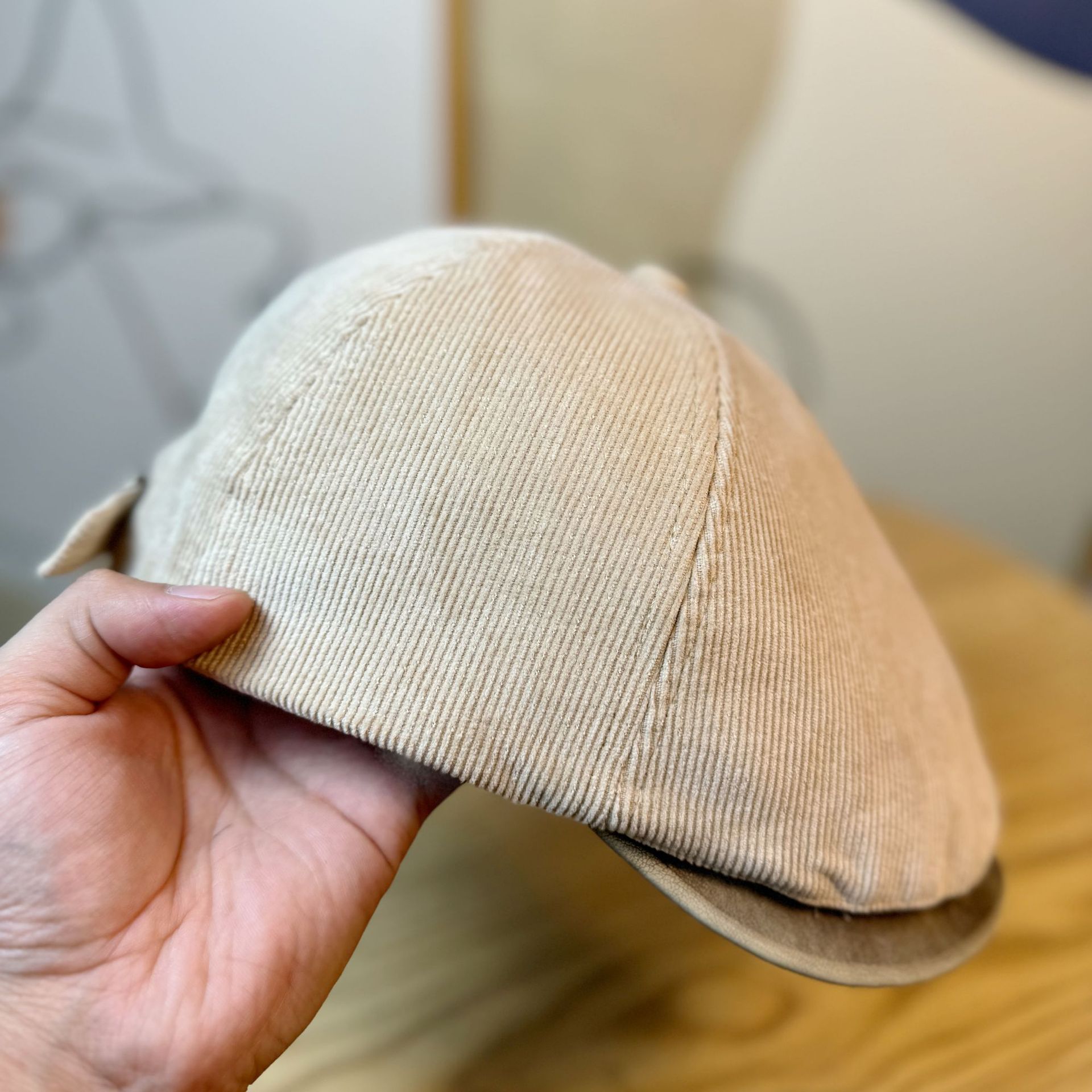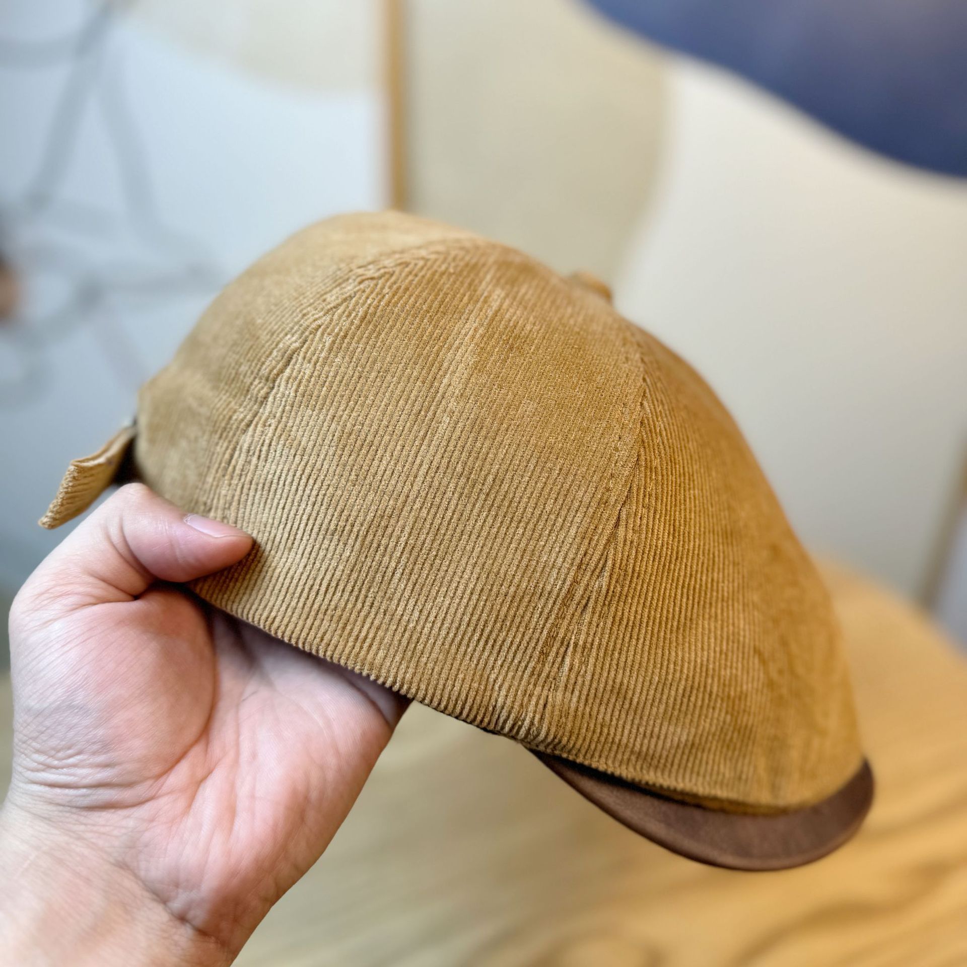 새로운 스타일 모자 여성의 가을과 겨울 빈티지 코듀로이 워시 가죽 모자 브림 앞으로 모자 뉴스 보이 모자 유행 남자와 여자의 오리 혀