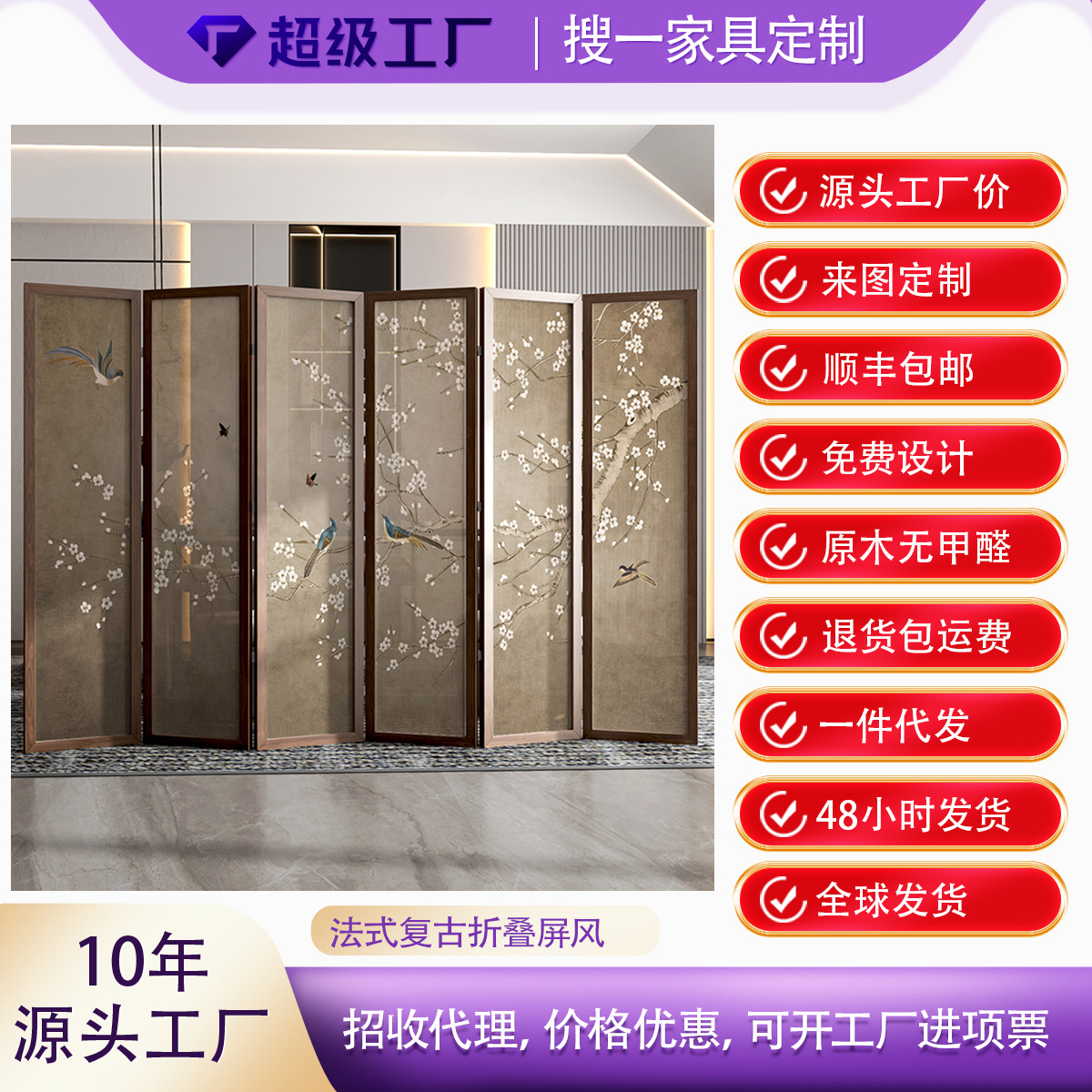 새로운 중국식 스크린 칸막이, 거실용 접이식 이동식 칸막이, 원목 접이식 스크린, 다기능 맞춤형 이동식스토어 가기