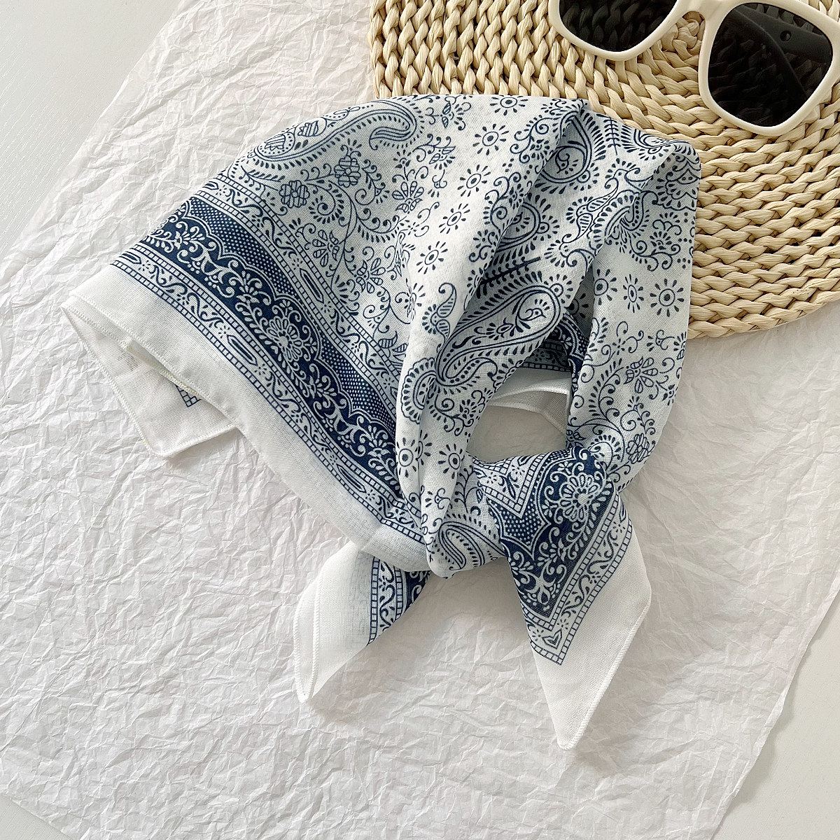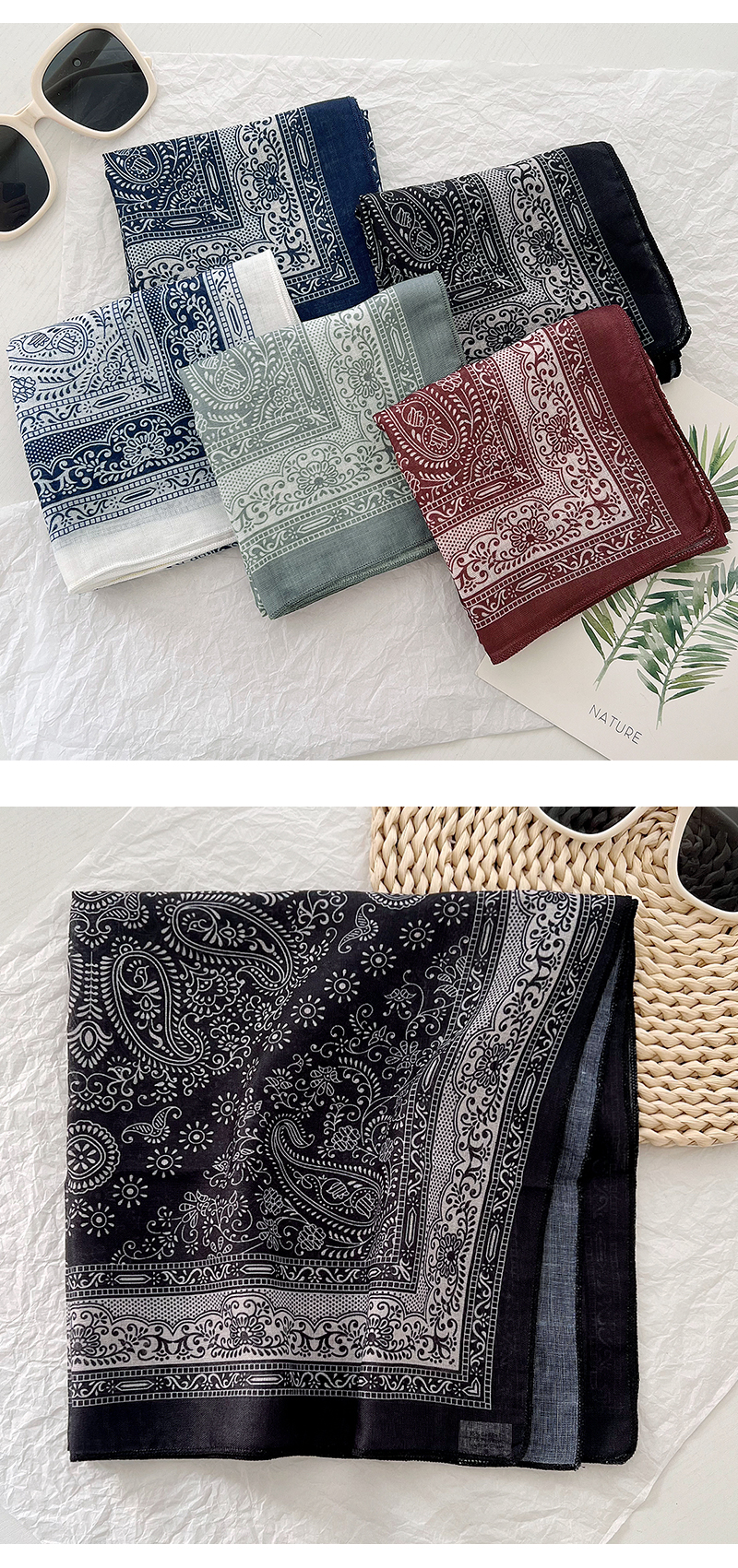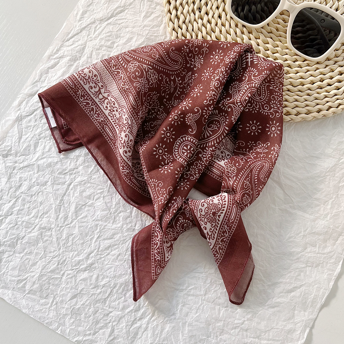 일본 스타일 빈티지 캐슈 꽃면과 린넨 작은 광장 여성 여행 장식 일치하는 작은 스카프 다기능 넥타이 가방