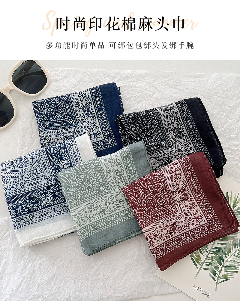 일본 스타일 빈티지 캐슈 꽃면과 린넨 작은 광장 여성 여행 장식 일치하는 작은 스카프 다기능 넥타이 가방스토어 가기