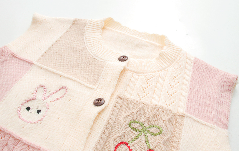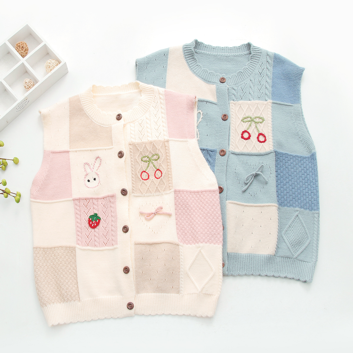 가을 새 딸기 토끼 자수 니트 조끼 여성의 가을과 겨울 달콤한 나이를 줄여 쌓인 웨이스트 코트 스웨터
