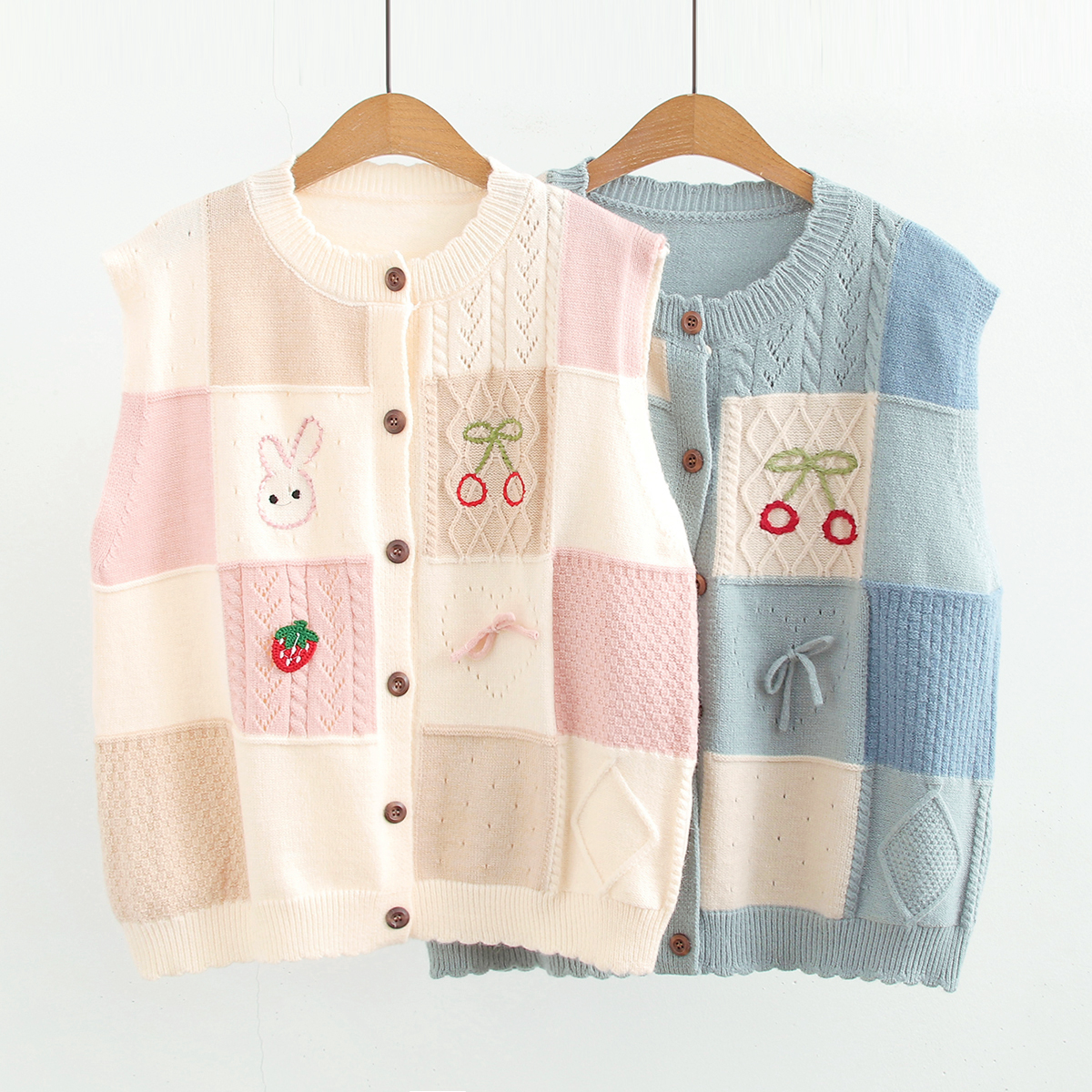 가을 새 딸기 토끼 자수 니트 조끼 여성의 가을과 겨울 달콤한 나이를 줄여 쌓인 웨이스트 코트 스웨터스토어 가기