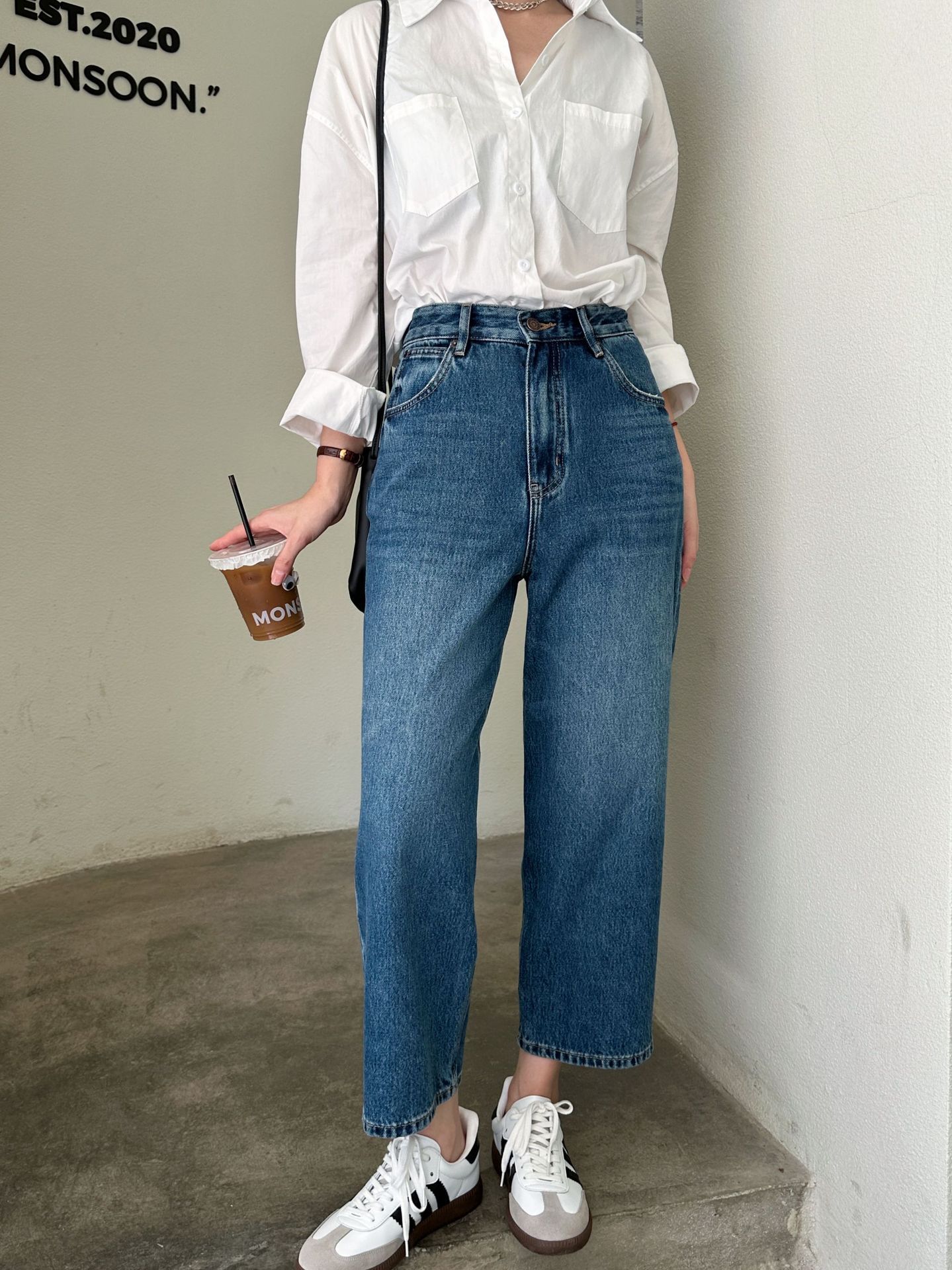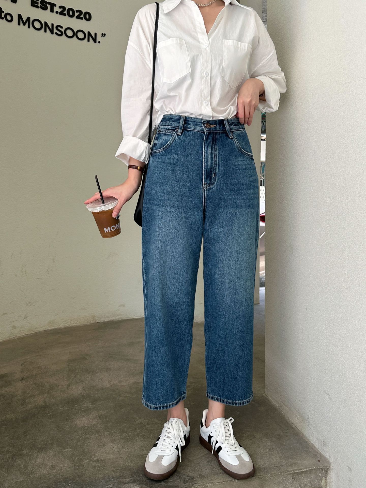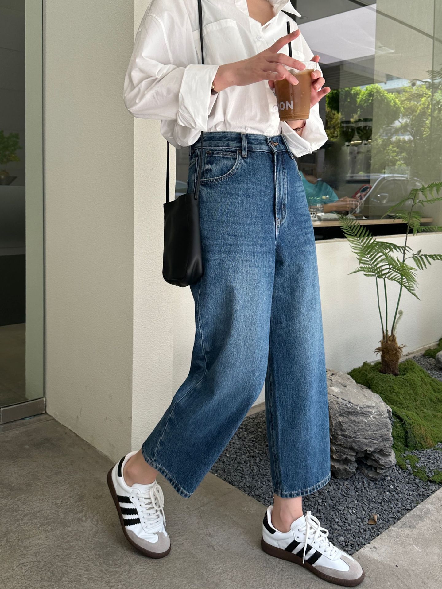보유 추천 2024 가을 새로운 도착 비 탄성 자른 청바지 할란 팬츠 느슨한 허리 청바지스토어 가기