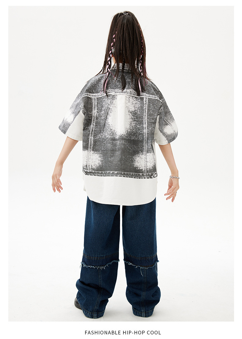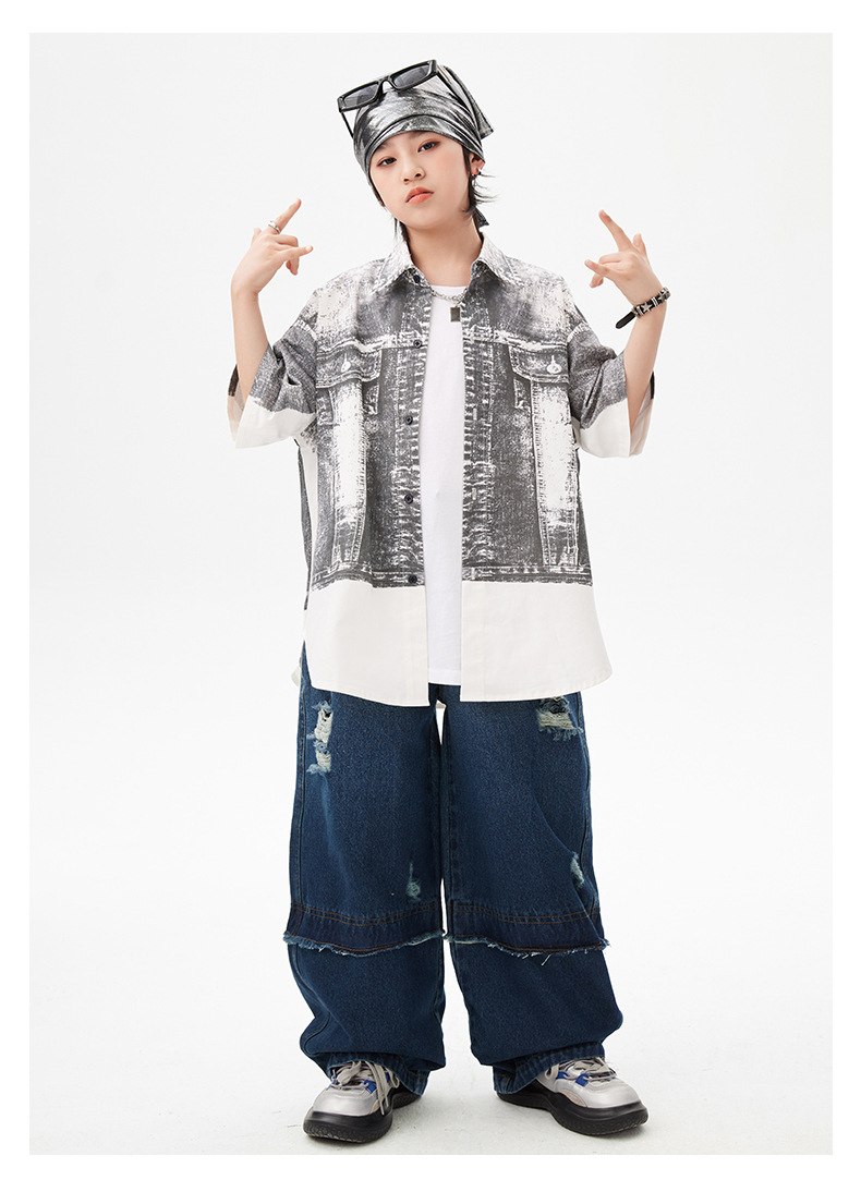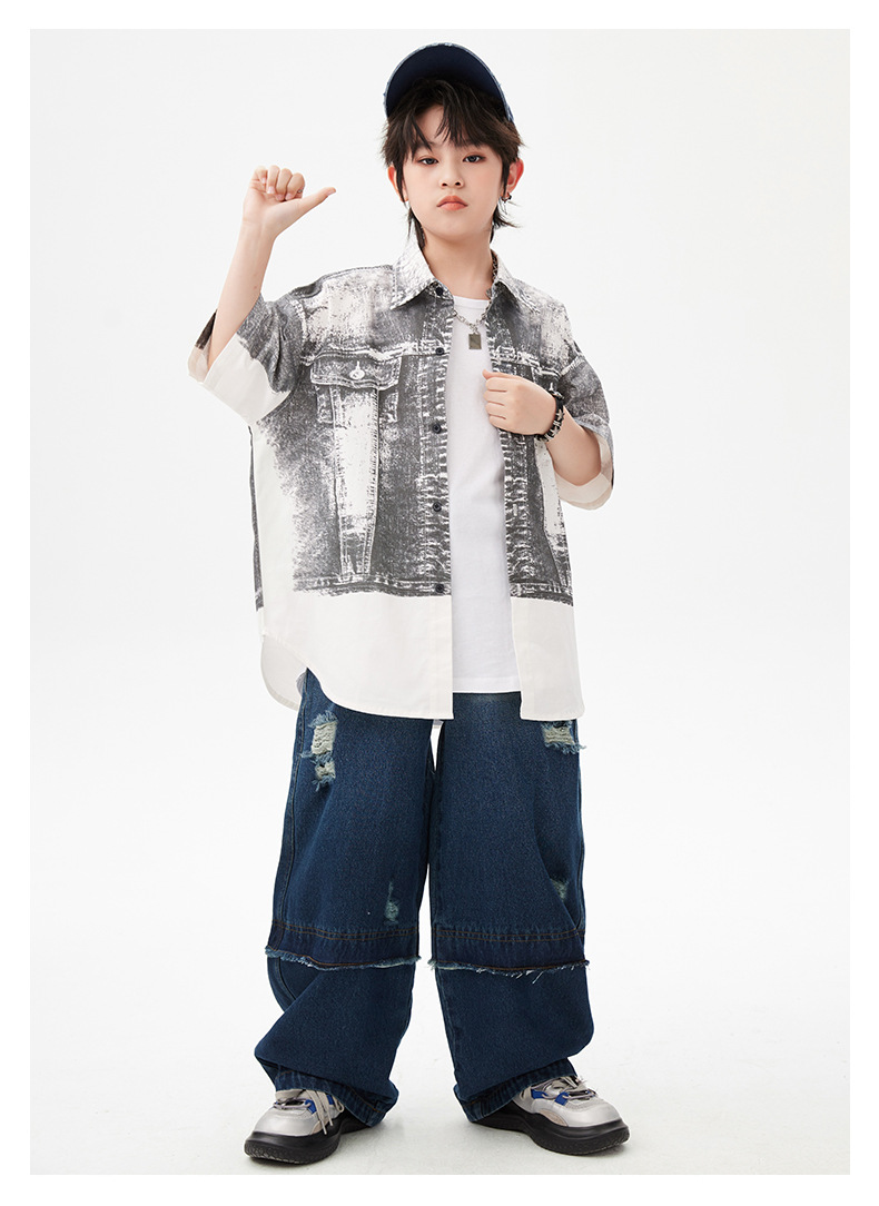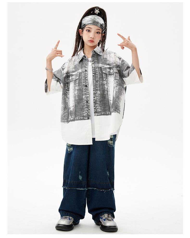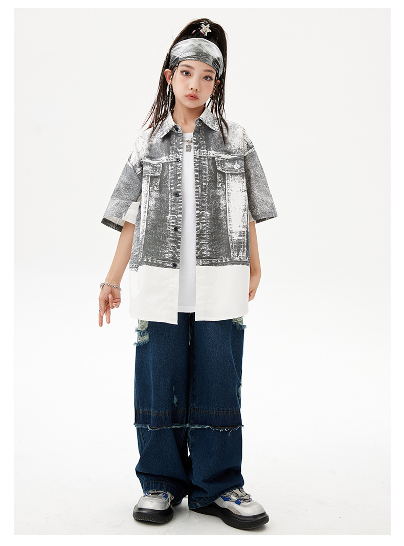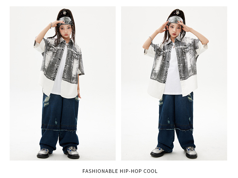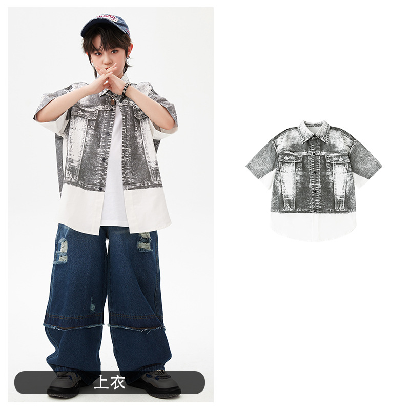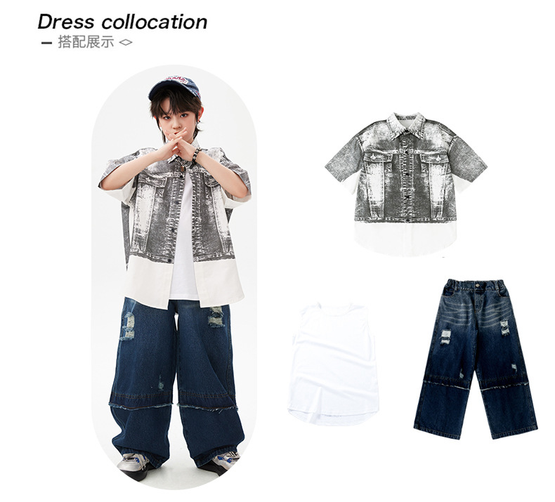힙합 어린이 패션 의류 쿨 어린이 의류 Hiphop 드럼 공연 의류 소년 힙합 느슨한 소년 여름스토어 가기