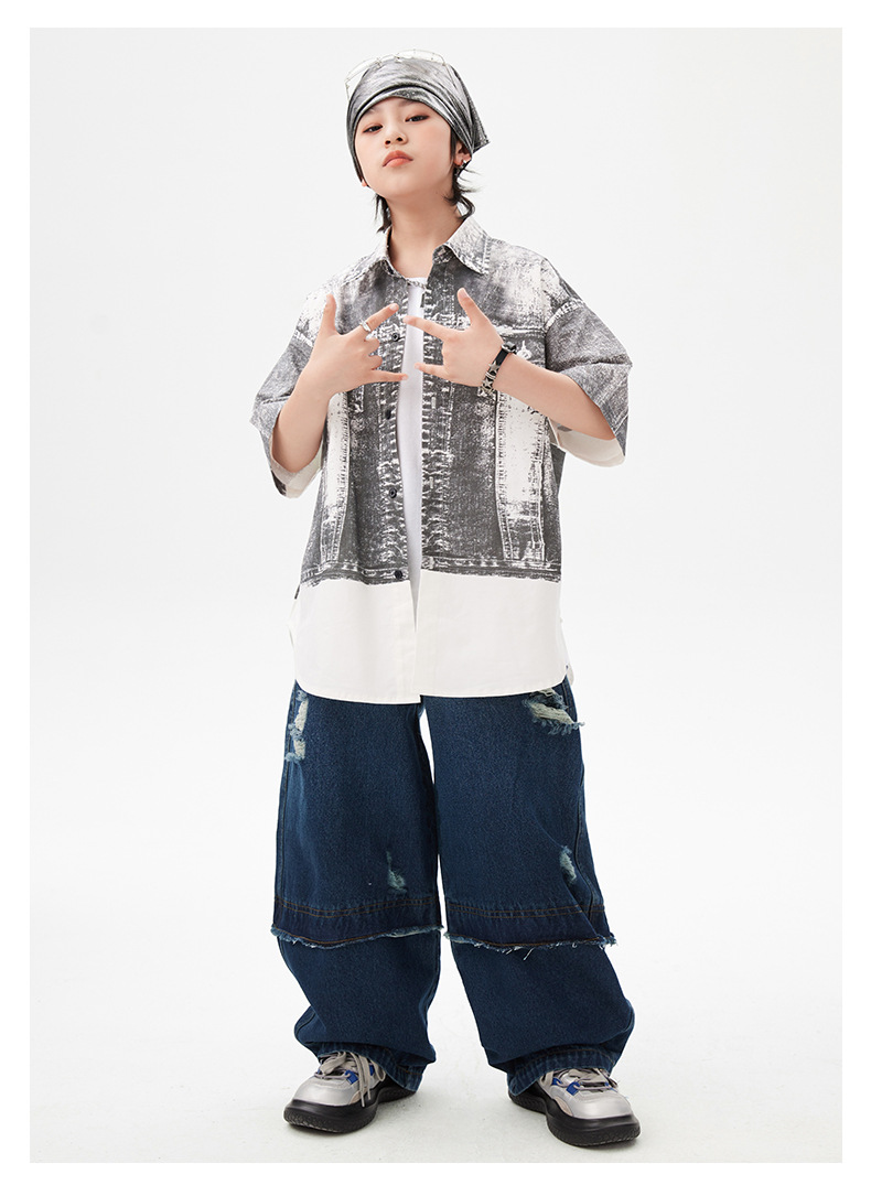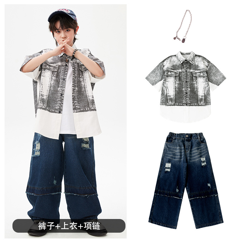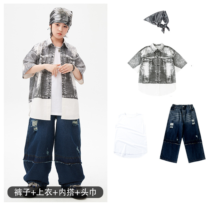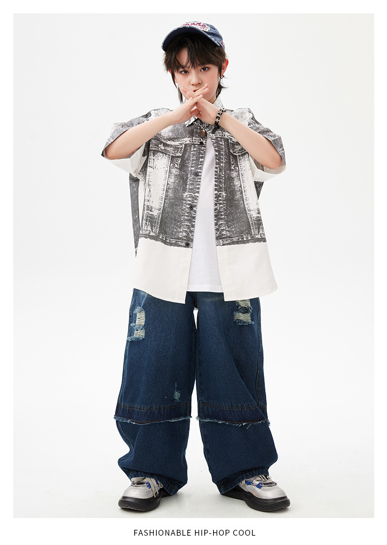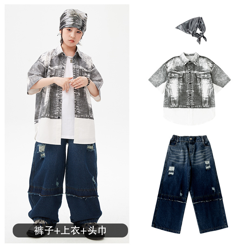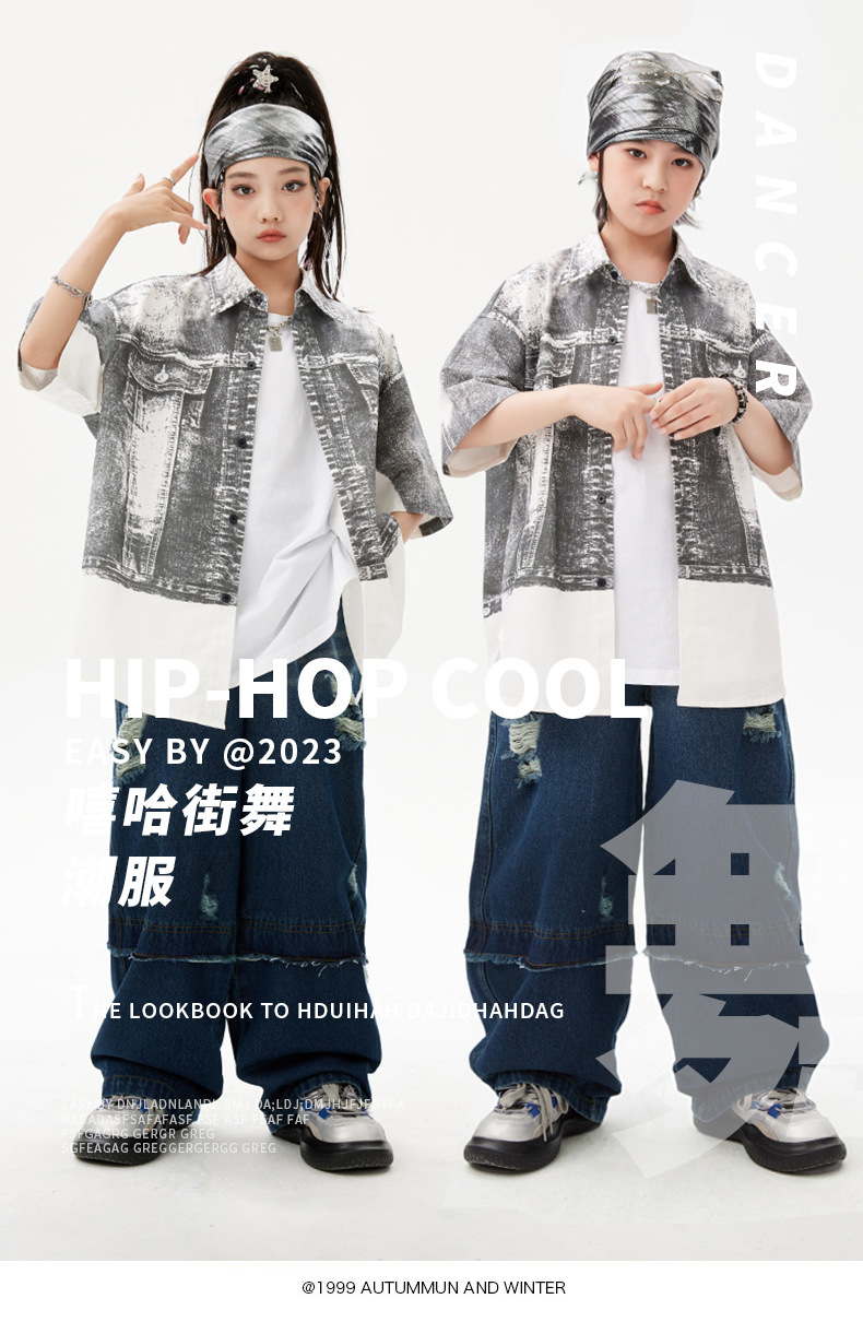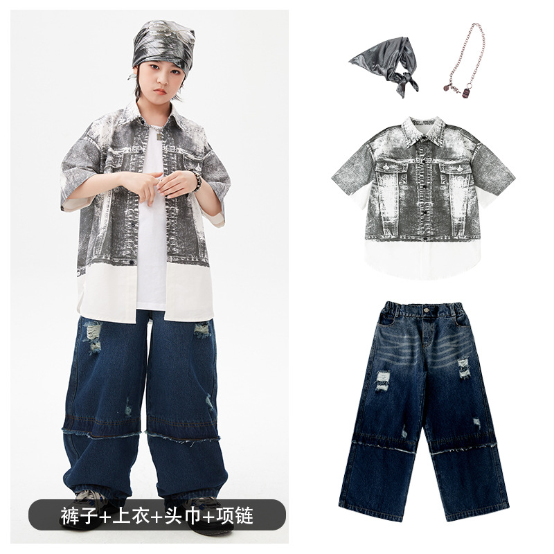 힙합 어린이 패션 의류 쿨 어린이 의류 Hiphop 드럼 공연 의류 소년 힙합 느슨한 소년 여름