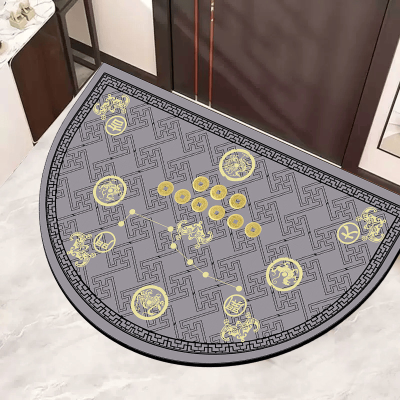 실버 그레이 반라운드 홈 매트 세븐 스타 나인 런 도어 매트 홈 미끄럼 방지 풋 매트 5 요소 오프닝 및 럭키 카펫