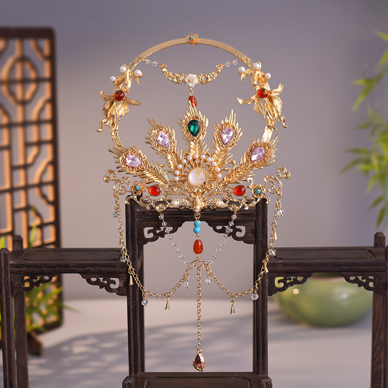 골동품 비행 헤어 분 둔황 댄스 공연 칼라 마돈나 헤어 크라운 헤일로 조리개 Guifei Bun Hanfu 헤어 액세서리스토어 가기