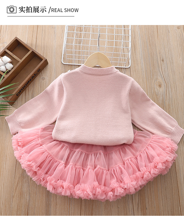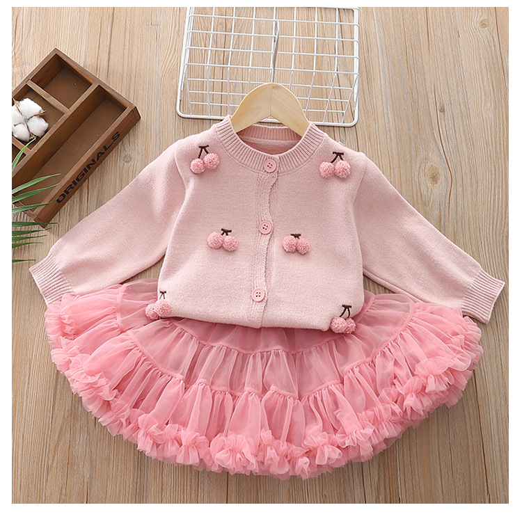 여자 세트 2024 가을 겨울 새 핑크 체리 스웨터 카디건 터그 스커트 아기 니트 탑 2 피스 세트스토어 가기