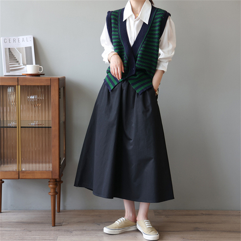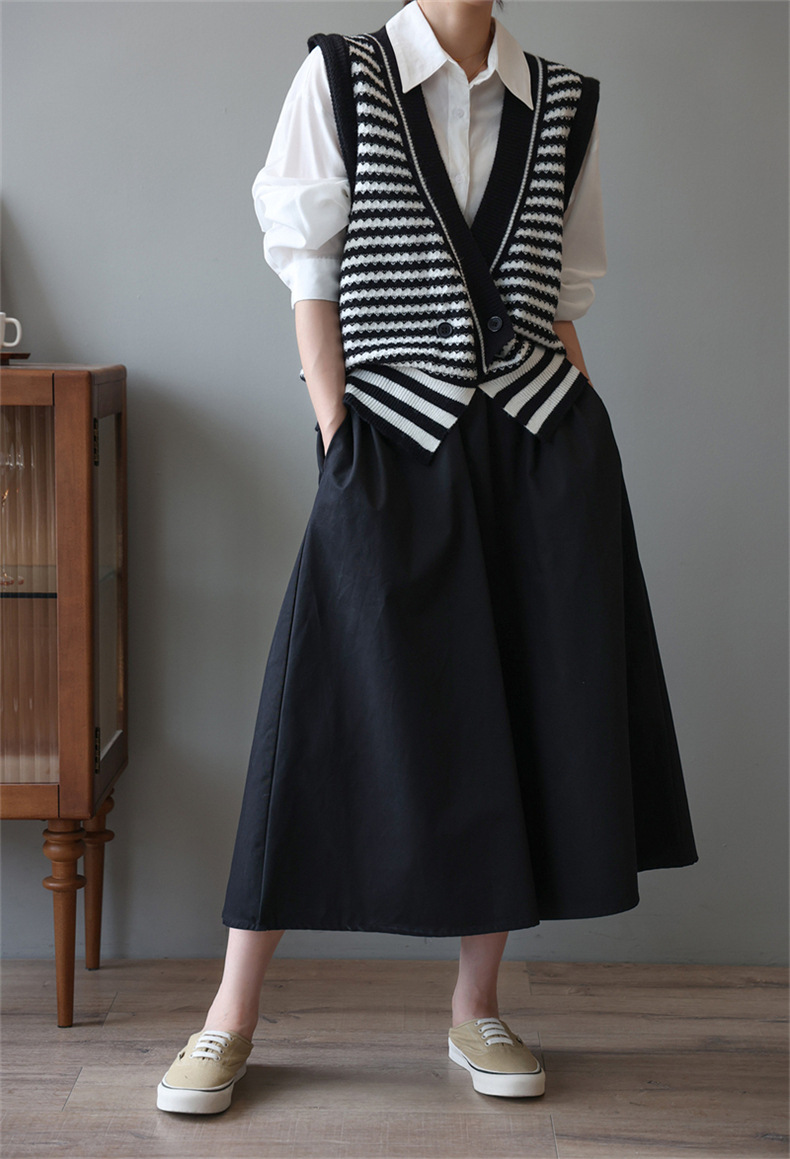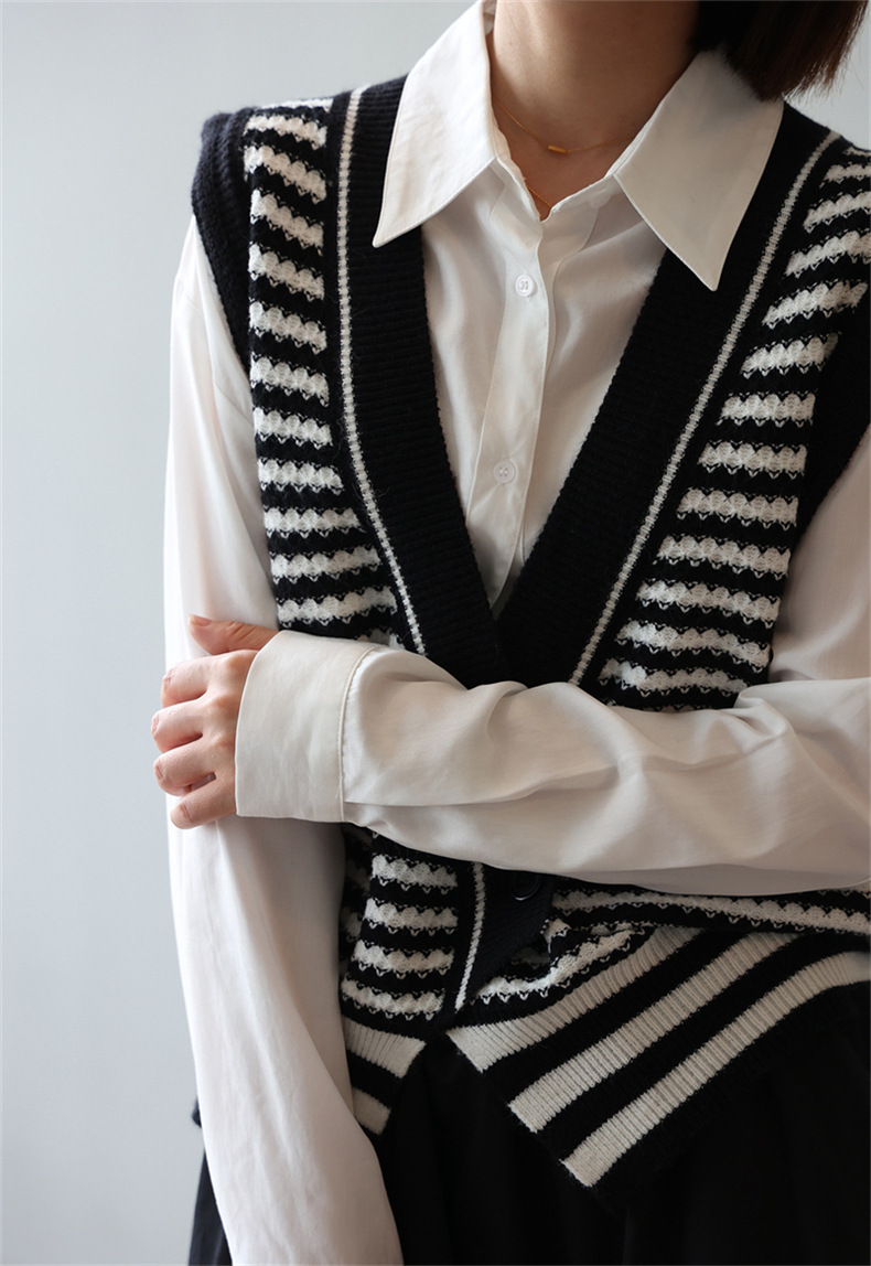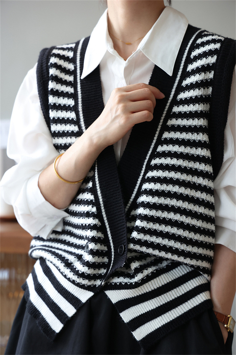 빈티지 게으른 줄무늬 니트 조끼 최고 여성 루즈 아우터 가을 패션 새로운 웨이스트 코트 스웨터 조끼