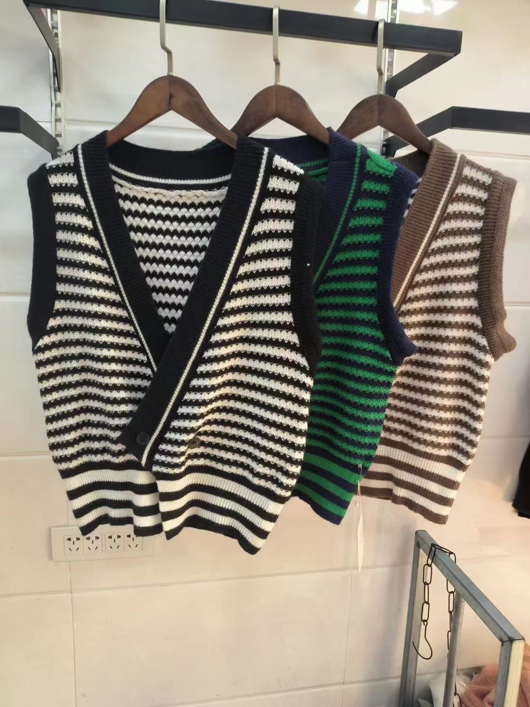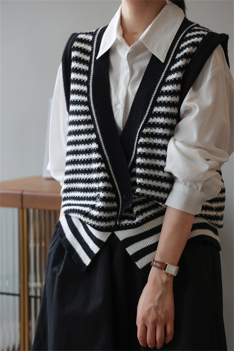 빈티지 게으른 줄무늬 니트 조끼 최고 여성 루즈 아우터 가을 패션 새로운 웨이스트 코트 스웨터 조끼스토어 가기