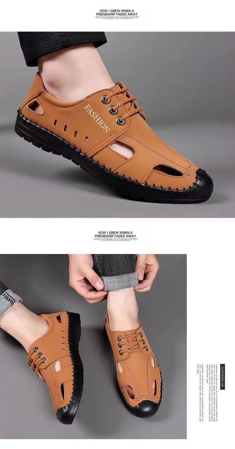 2025년 신상 남성 여름 샌들, 캐주얼, 크로스보더 대외 무역, 중공 가죽 신발, 가벼운 트렌드 공급스토어 가기