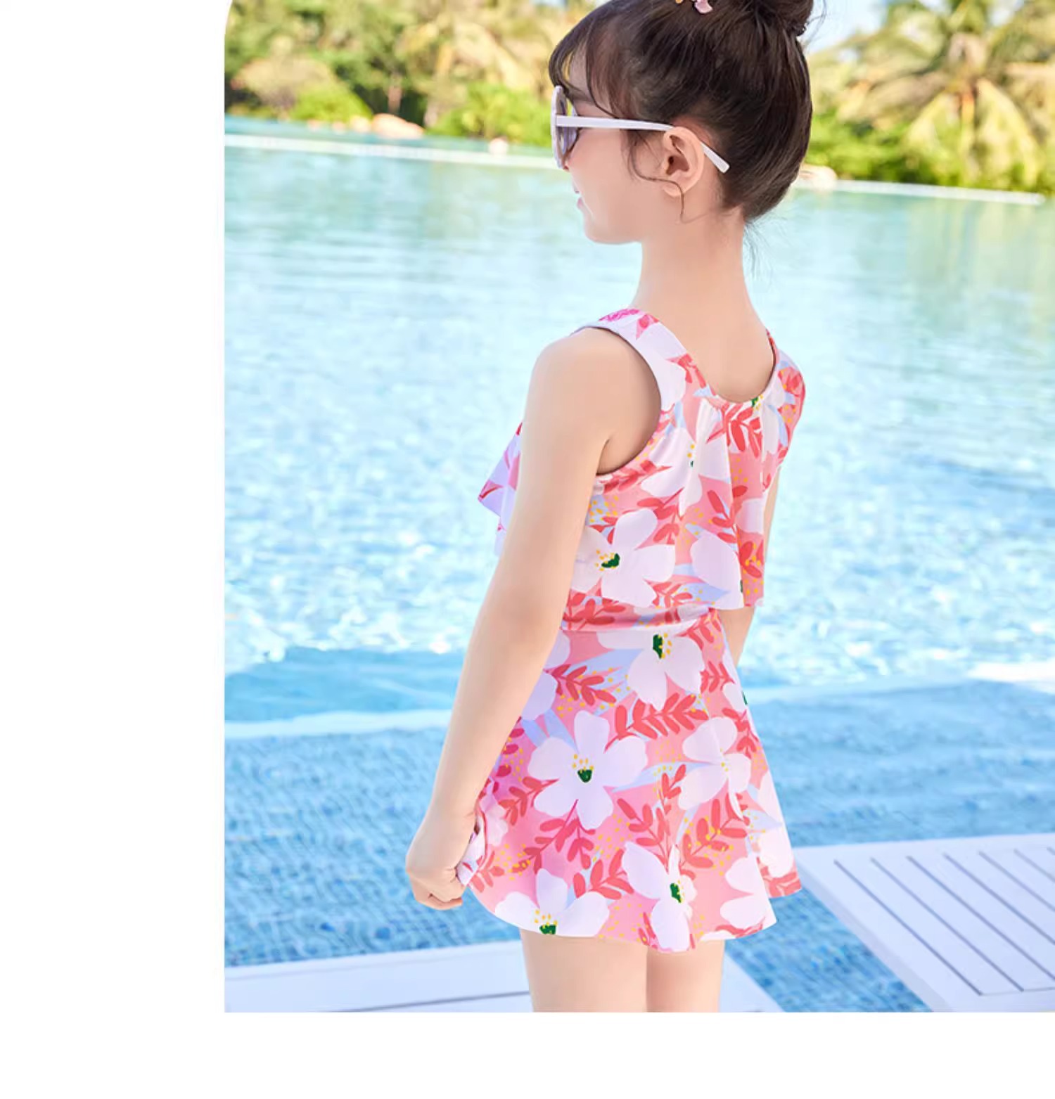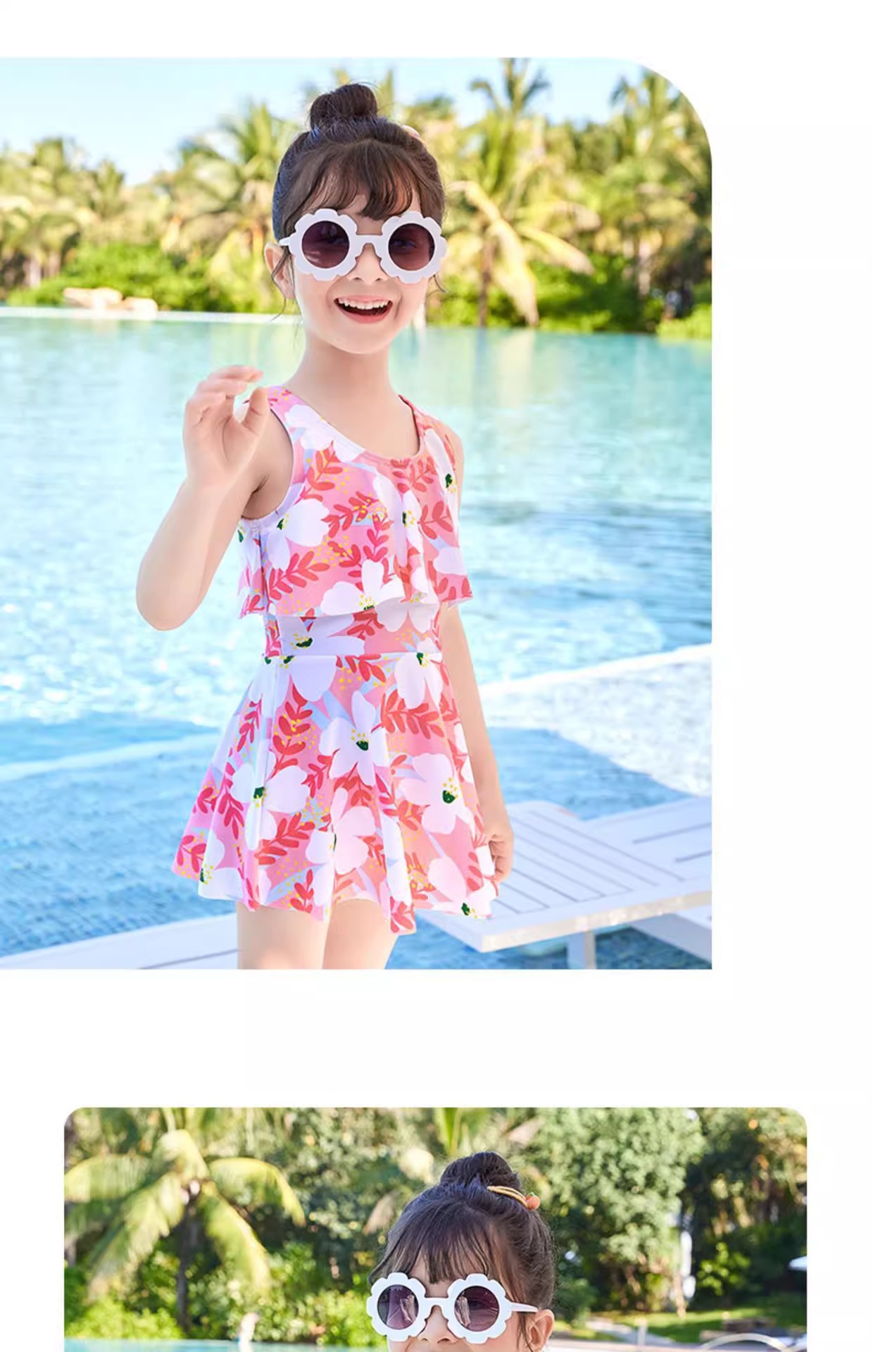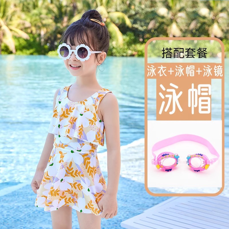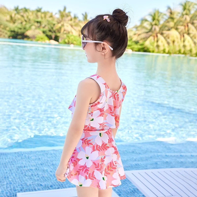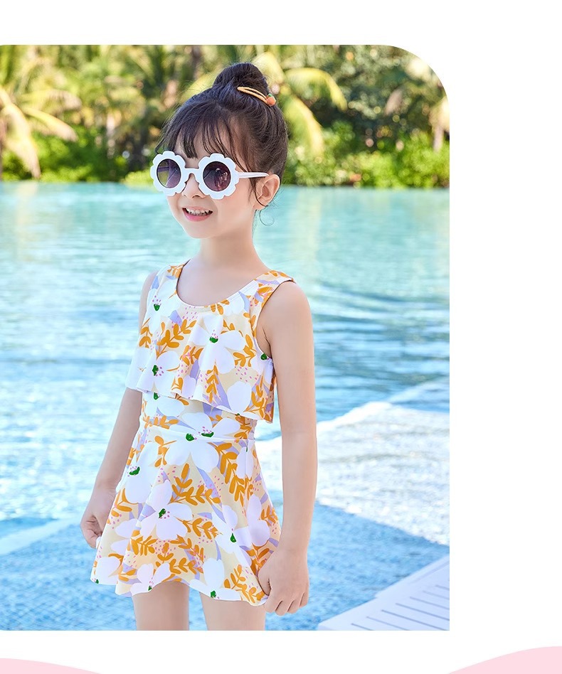 어린이 수영복 소녀 2023 년 새 여름 소녀 Siomatic 작은 중년 공주 꽃 해변 원피스 장비스토어 가기