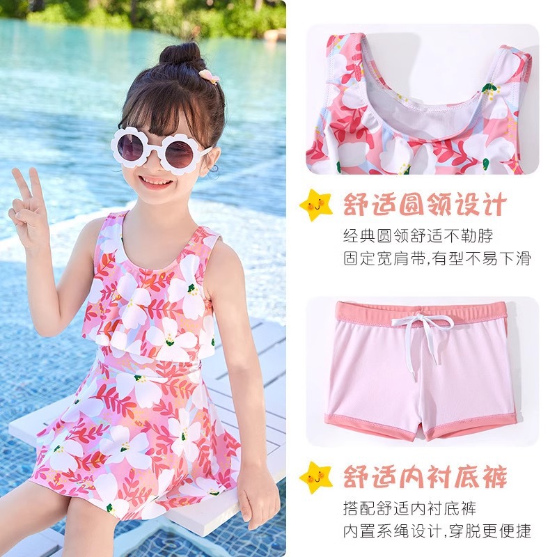 어린이 수영복 소녀 2023 년 새 여름 소녀 Siomatic 작은 중년 공주 꽃 해변 원피스 장비