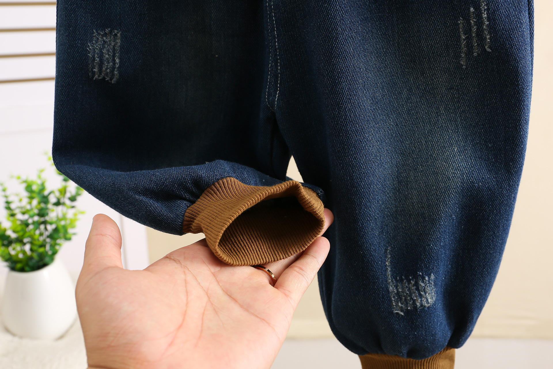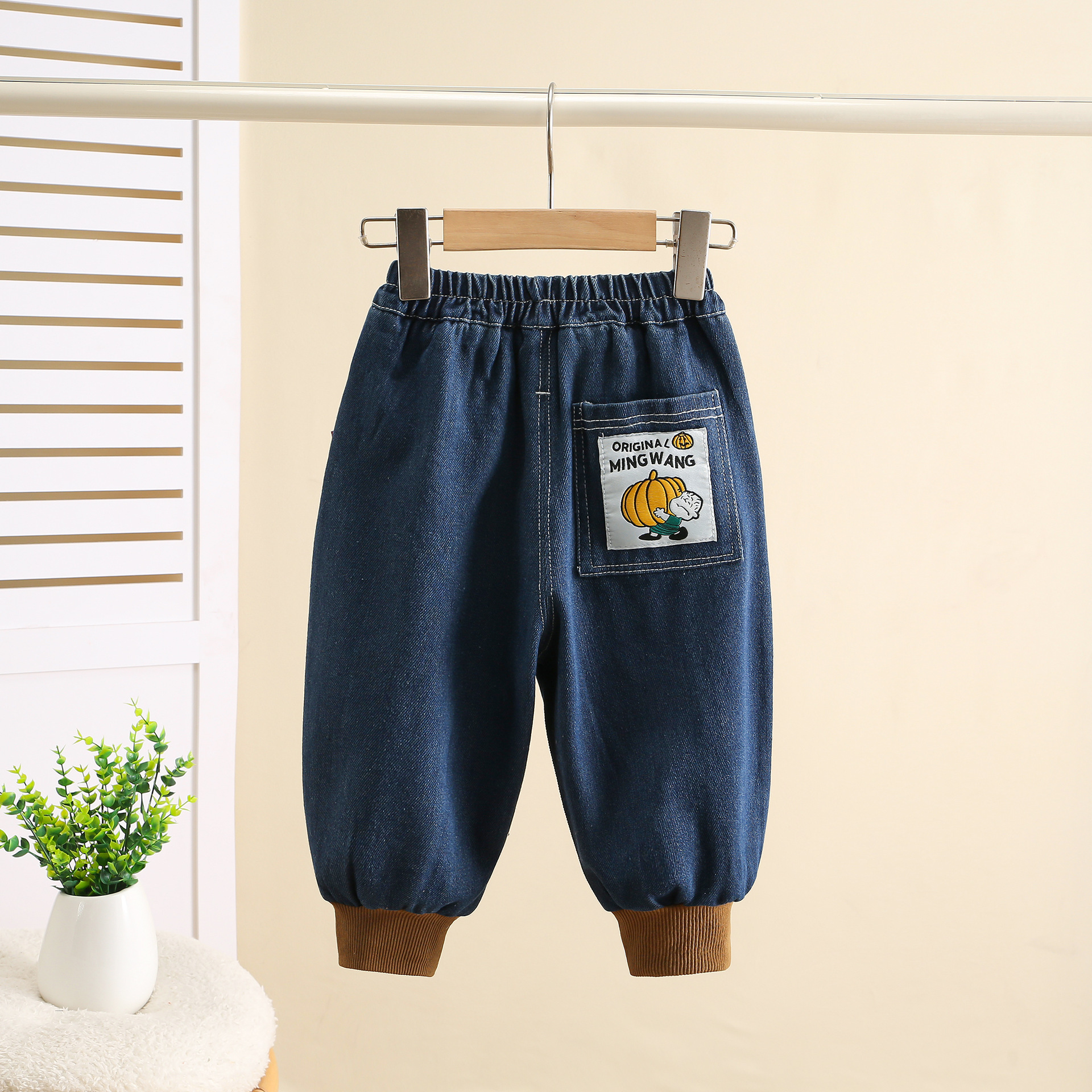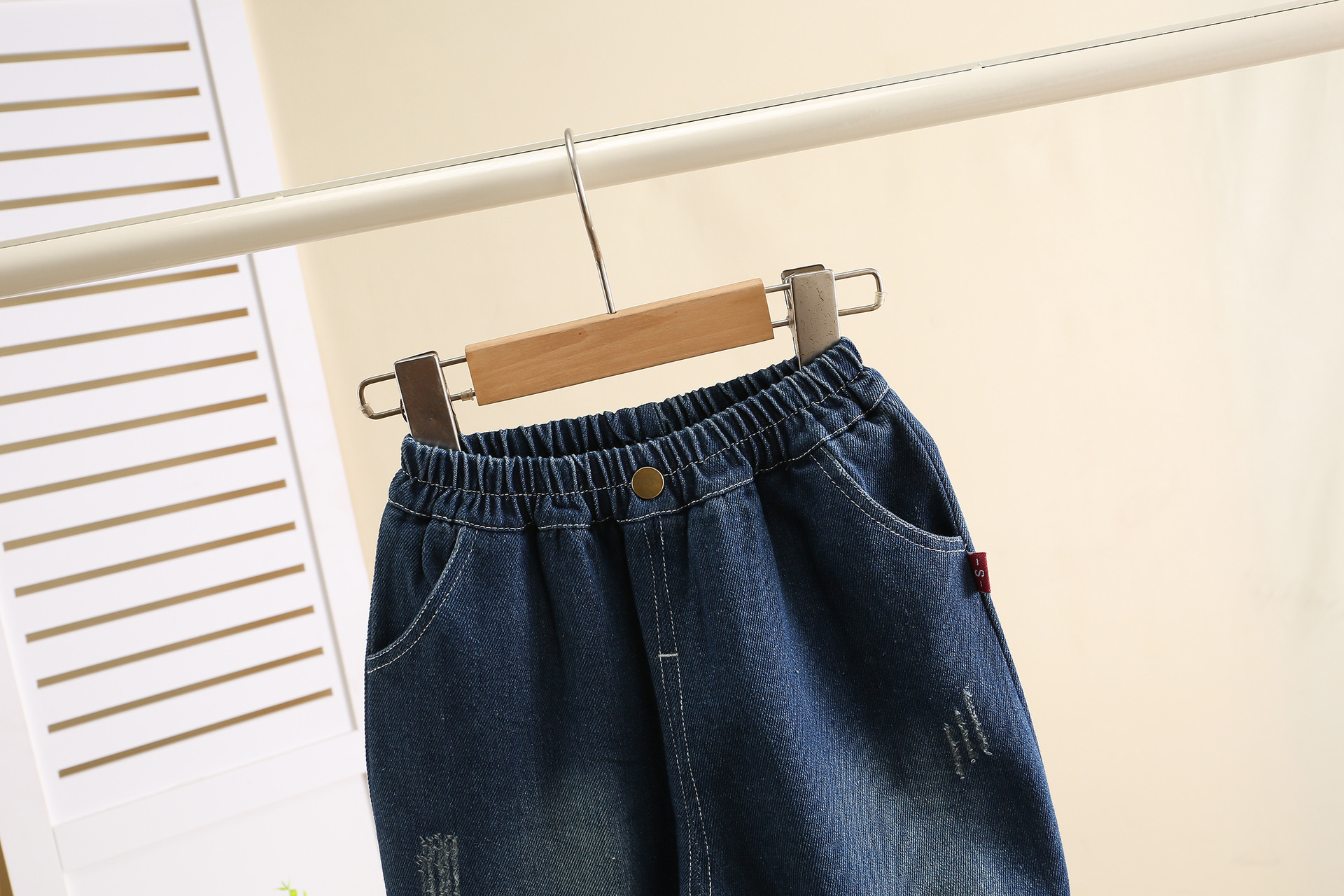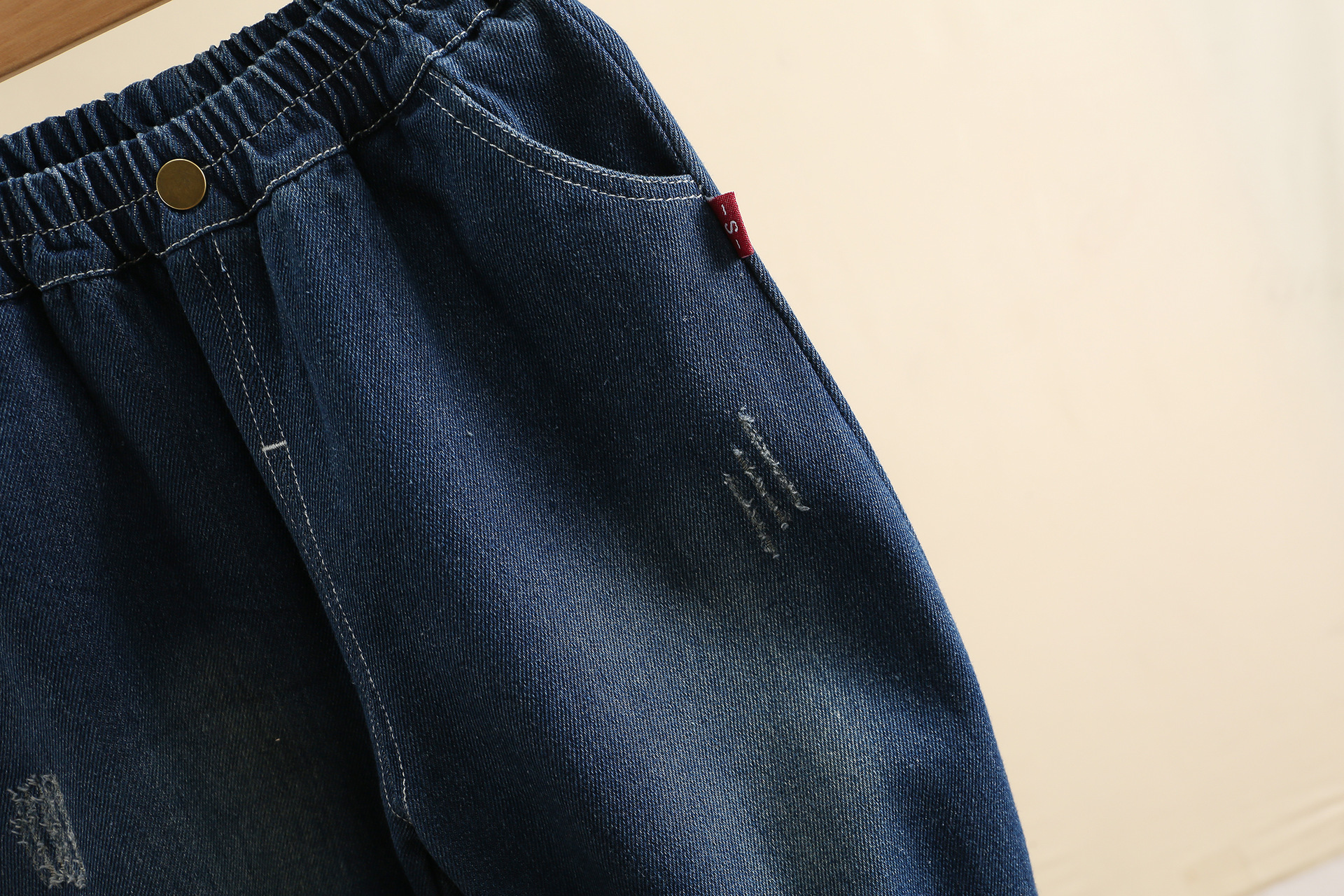 잘 생긴 작은 소년의 찢어진 청바지 2024 봄과 가을 새로운 어린이 캐주얼 바지 1-3 세 아기 가을 어린이 바지스토어 가기