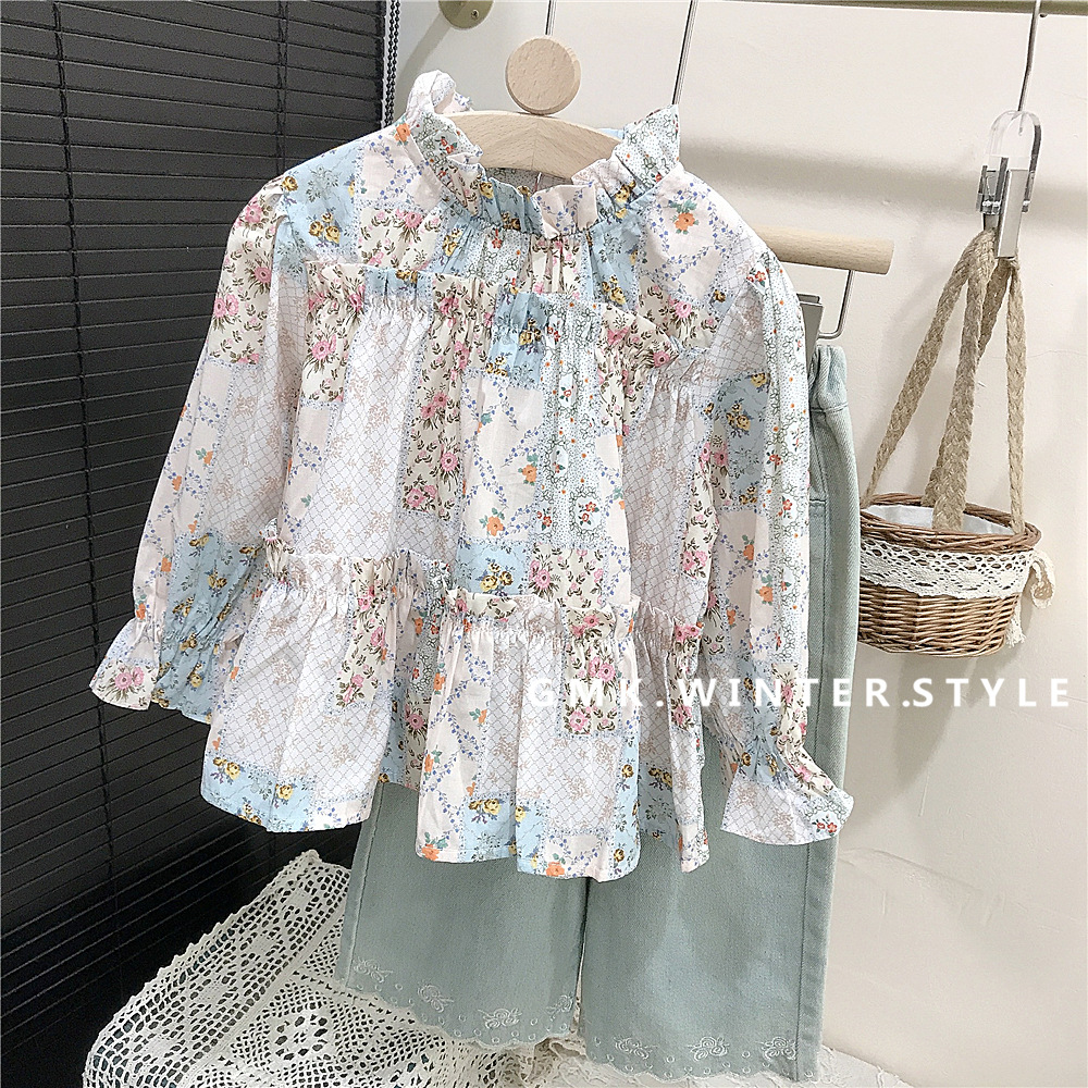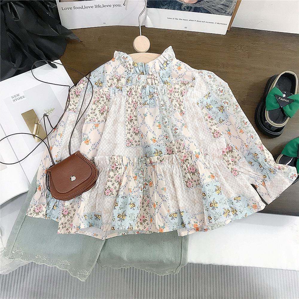 소녀 셔츠 가을 새로운 스타일 아기 꽃 탑 어린이 의류 봄과 가을 어린이 공주 셔츠 대외 무역