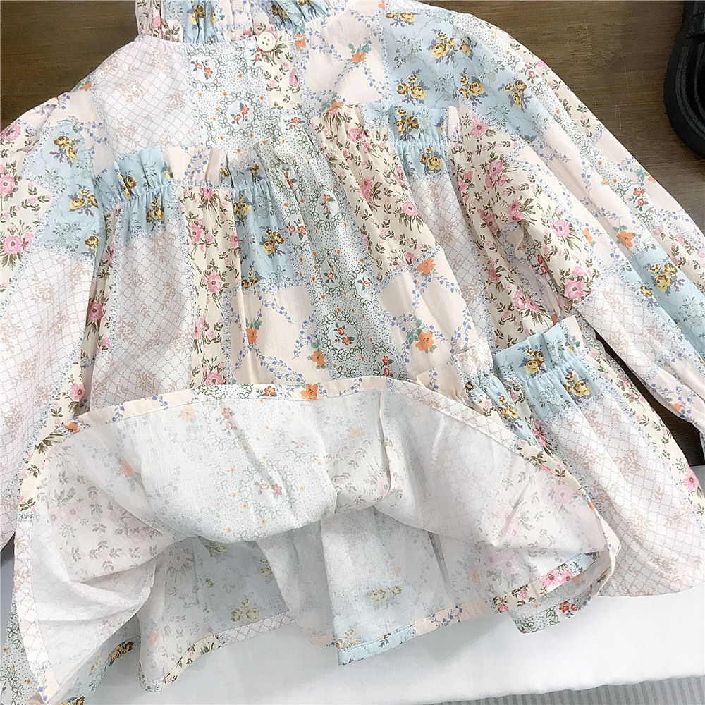 • 스탠드 칼라 꽃무늬 베이비돌 셔츠