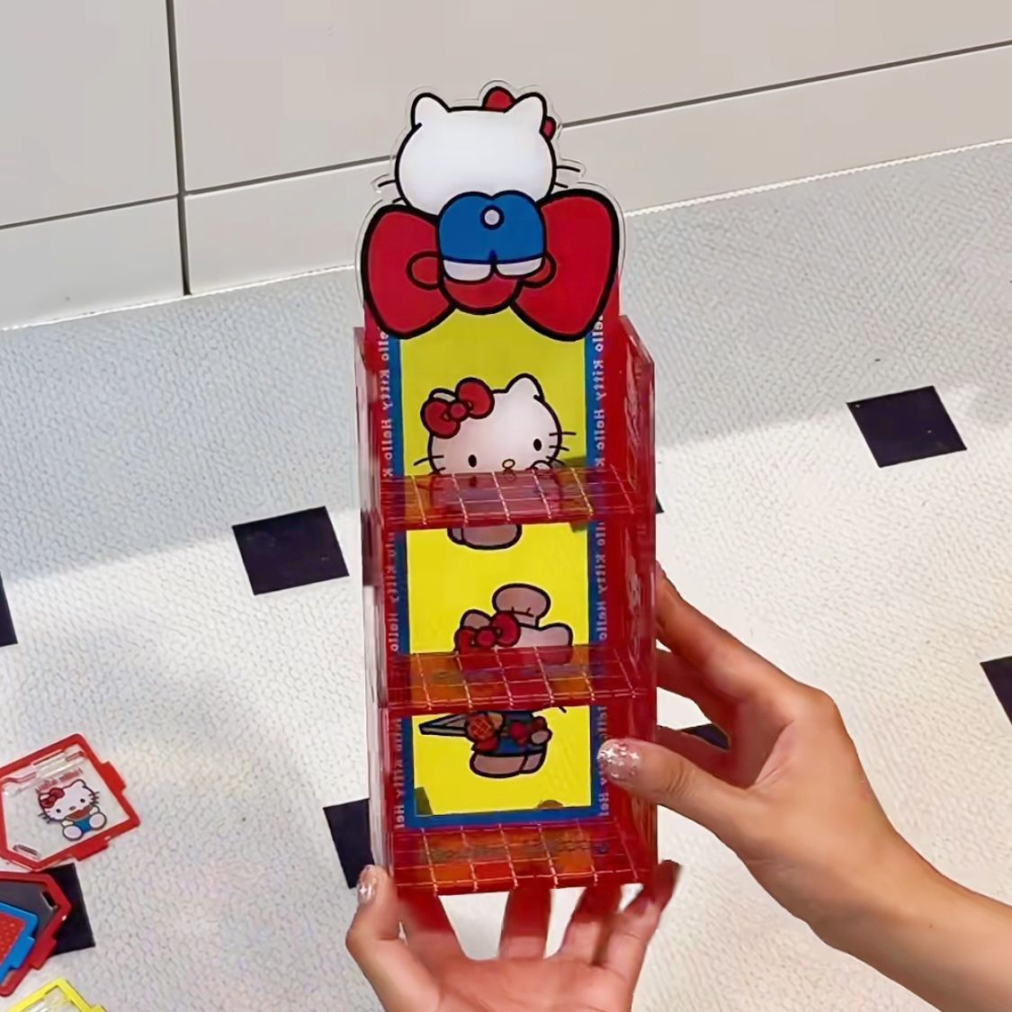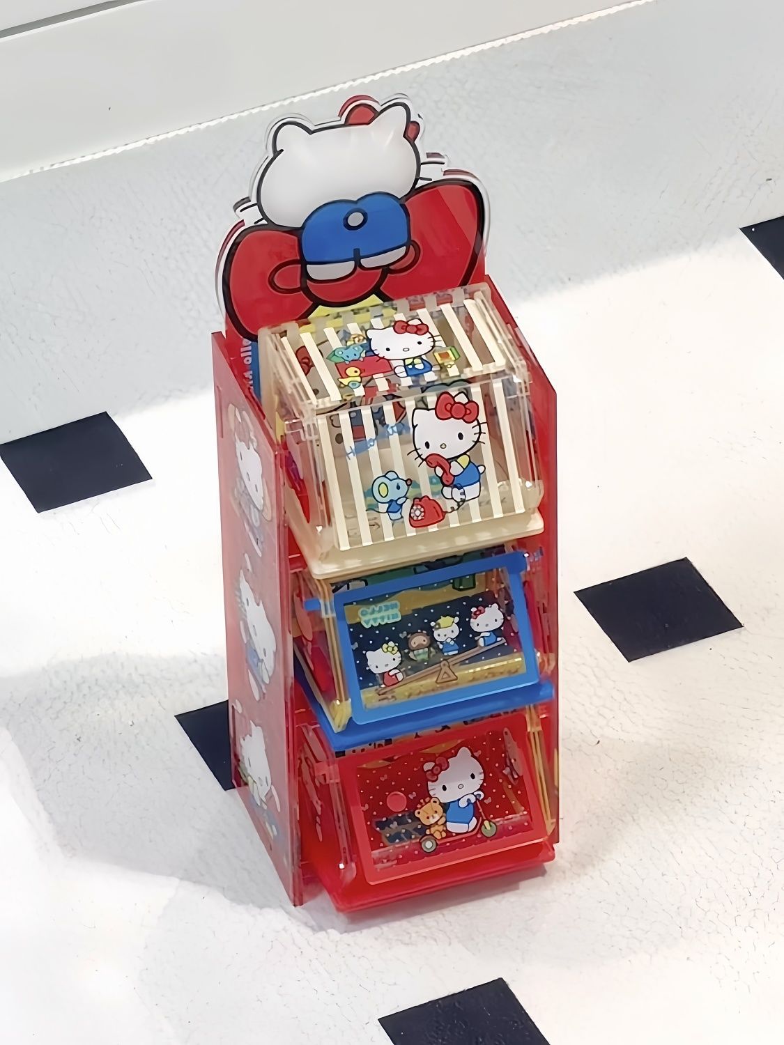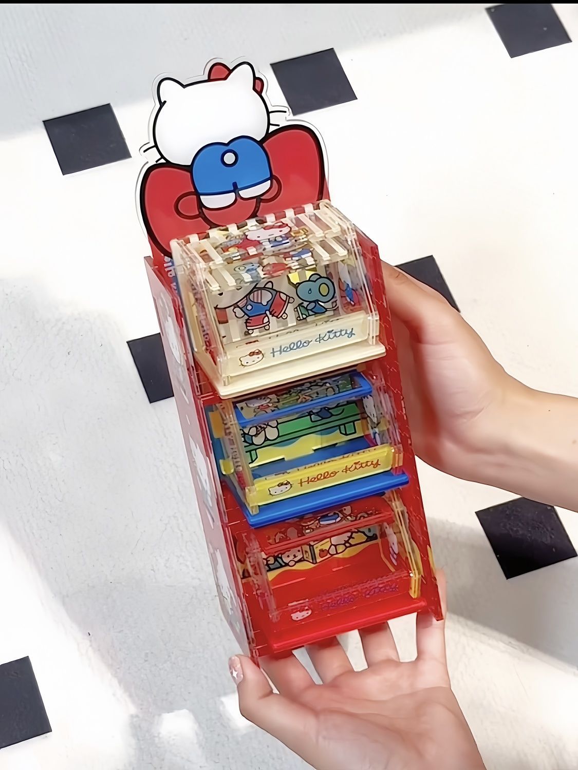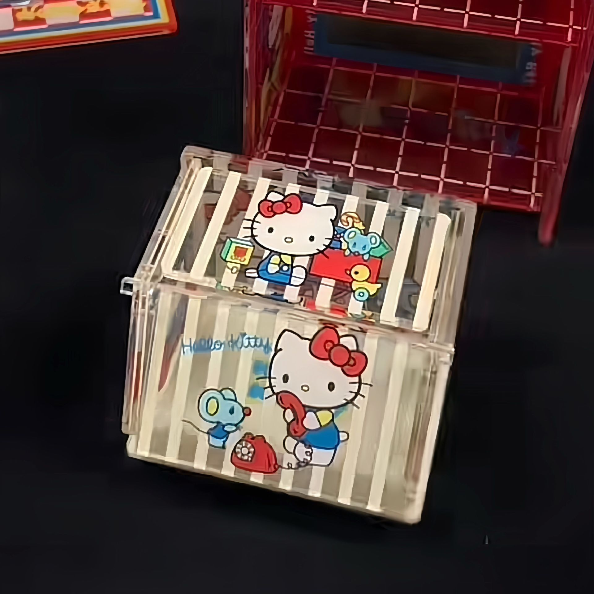 귀여운 만화 핑크색 수납함 3단 조립 DIY 아크릴 kt 고양이 사탕 상자 플립탑 데스크탑 정리함스토어 가기