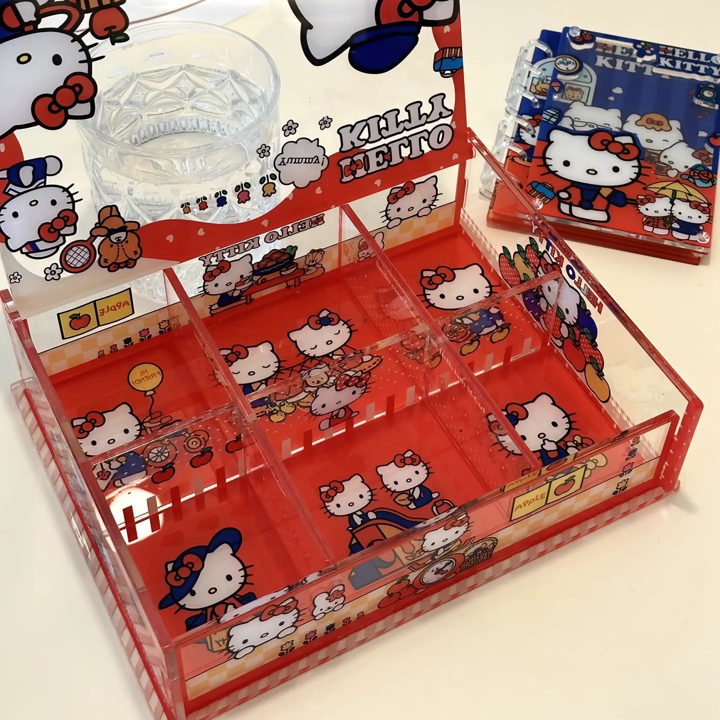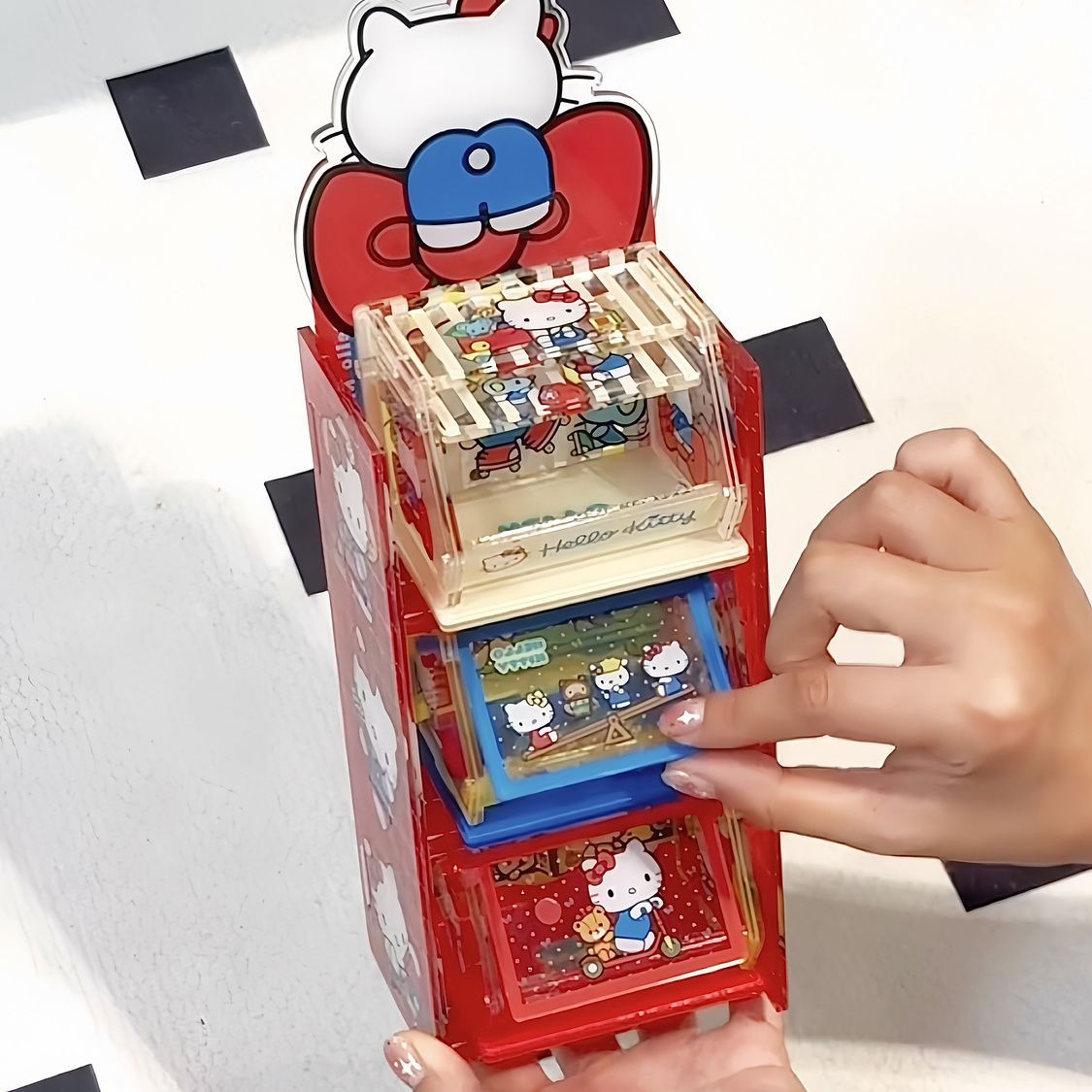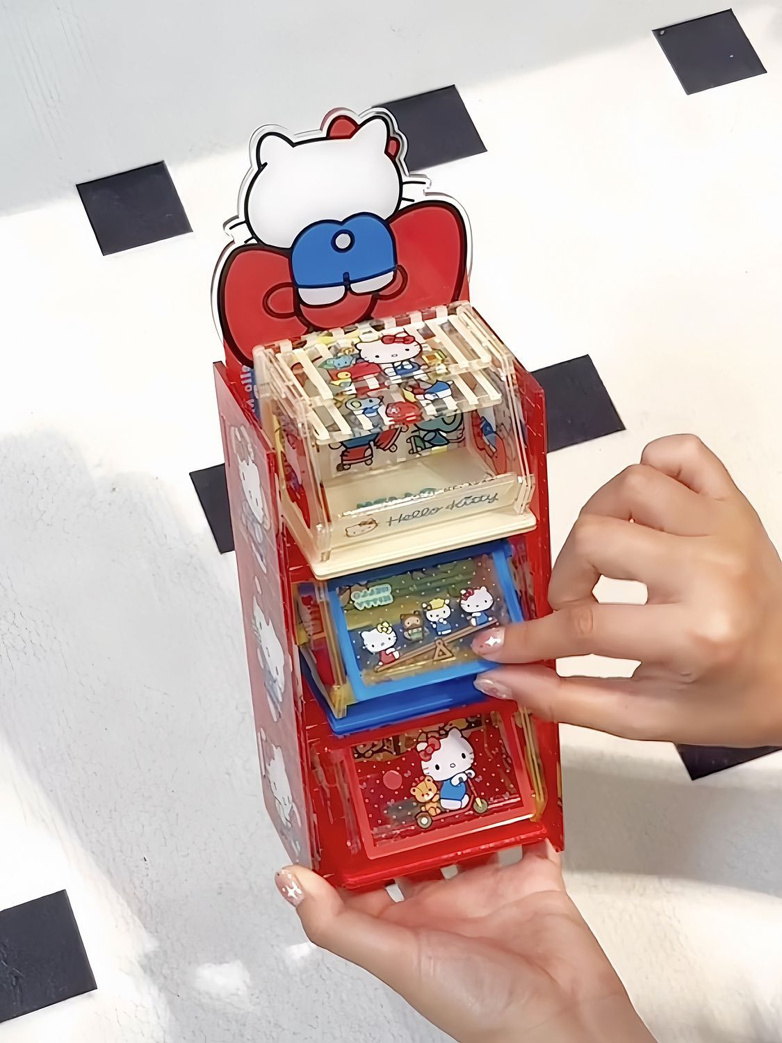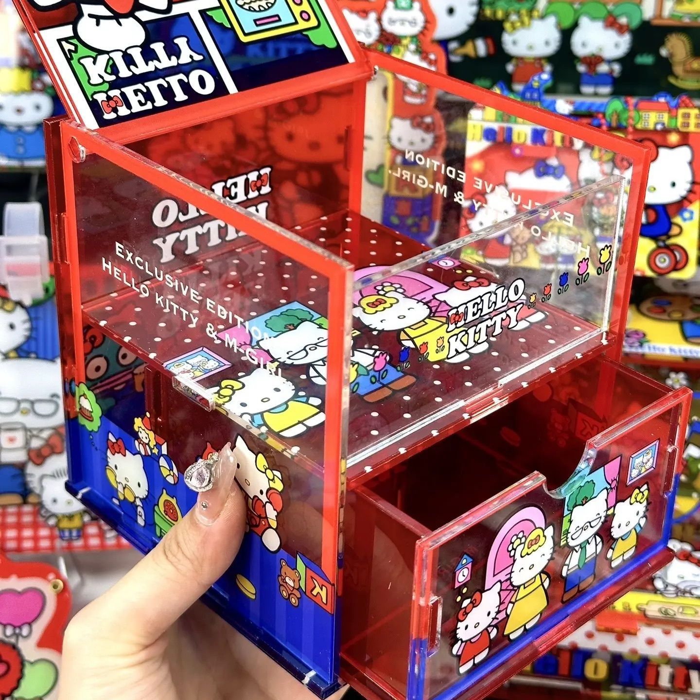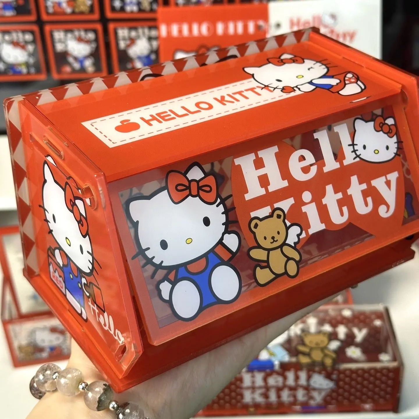 귀여운 만화 핑크색 수납함 3단 조립 DIY 아크릴 kt 고양이 사탕 상자 플립탑 데스크탑 정리함스토어 가기