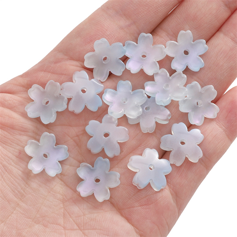 유리 3 차원 중간 구멍 벚꽃 구슬 손으로 구슬 수제 diy 꽃 구슬 팔찌 보석 액세서리 재료 느슨한 구슬 도매