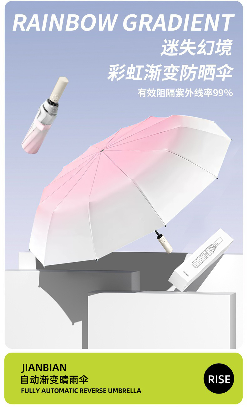그라디언트 신선한 자동 두꺼운 검은 고무 태양 보호 햇빛 UV 보호 고급 맑고 비 이중 목적 우산 광고 우산스토어 가기