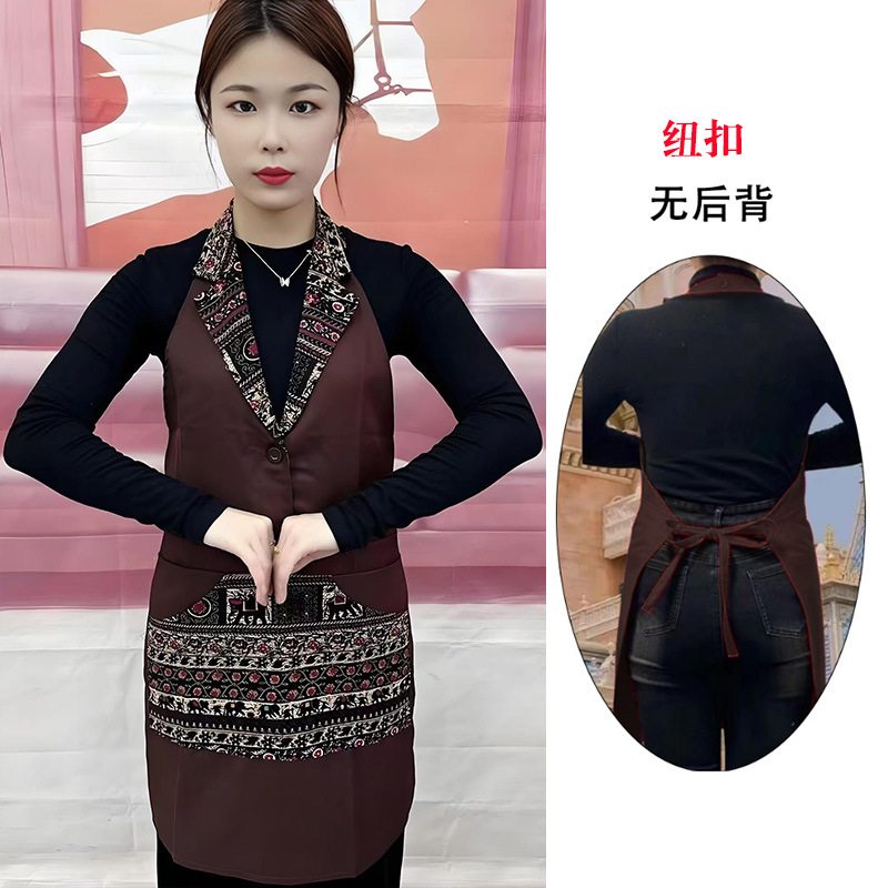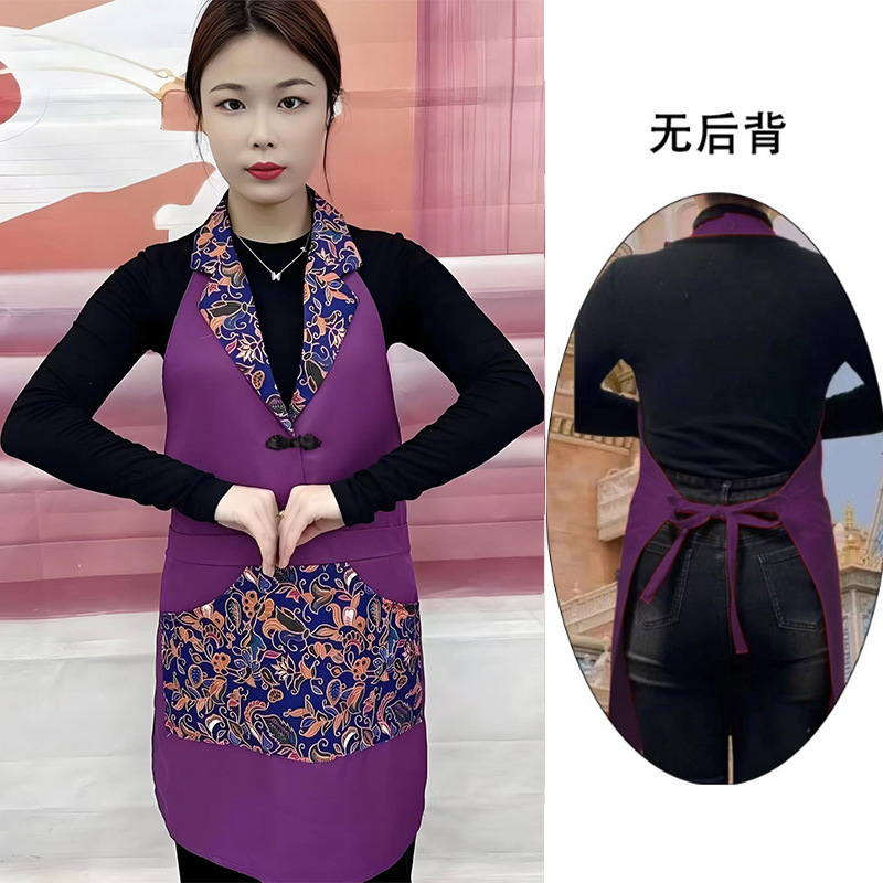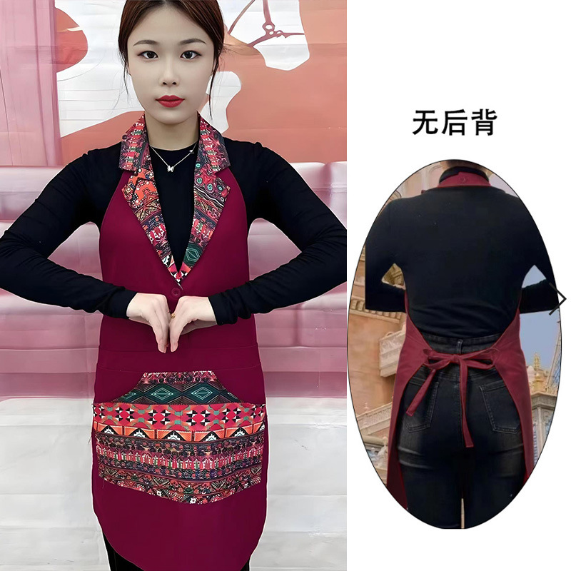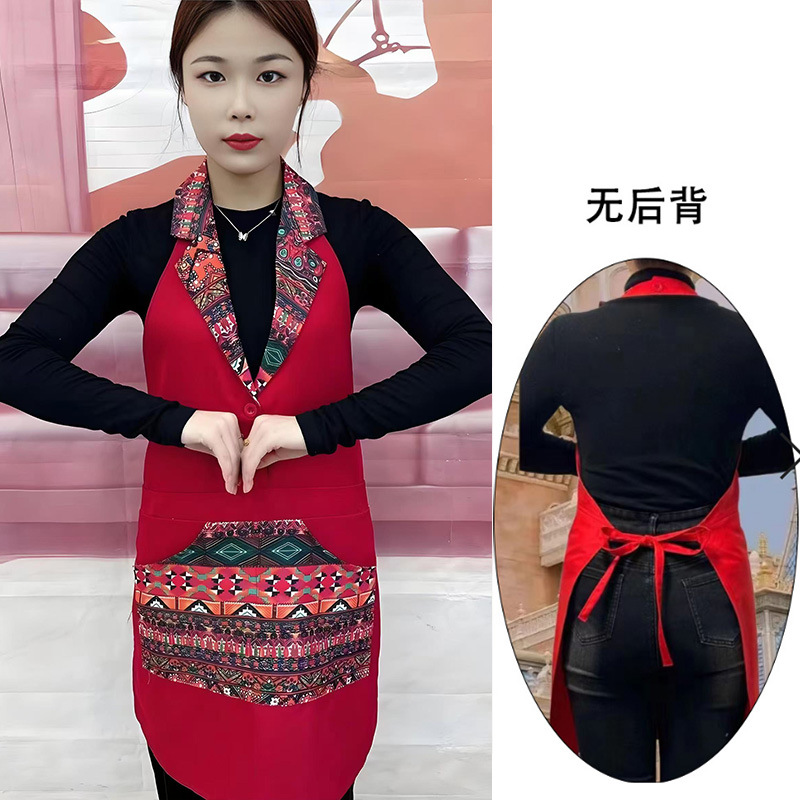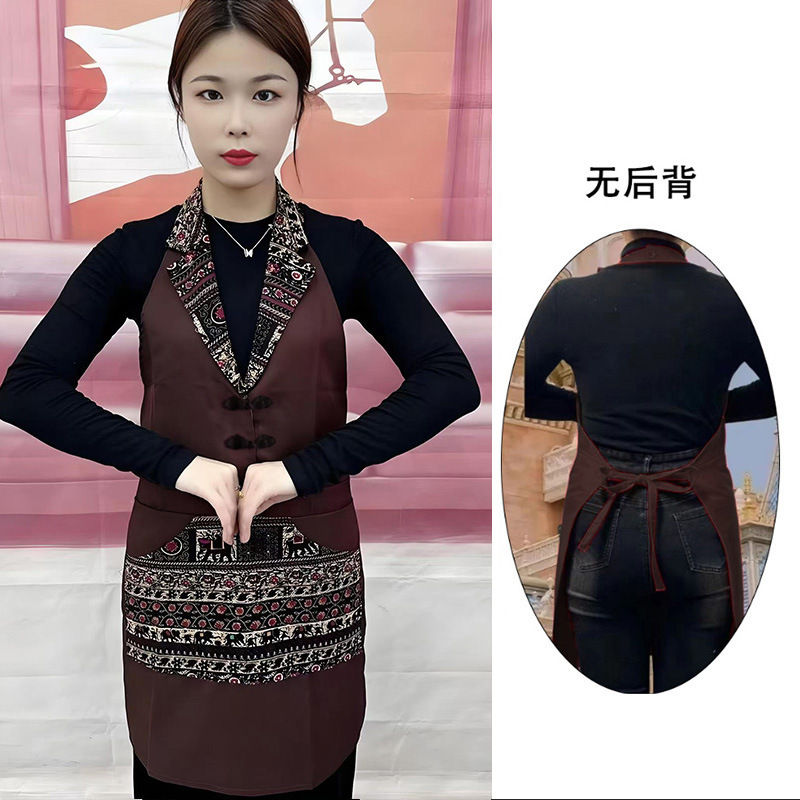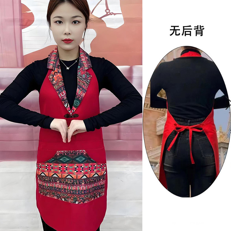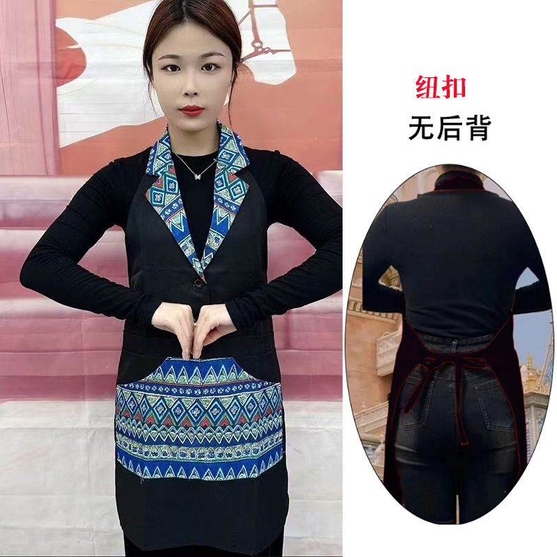 w3 등이 없는 클래식 민족풍 신상품 라펠 앞치마 정장 칼라 전골 요리 주방 식당 작업복스토어 가기