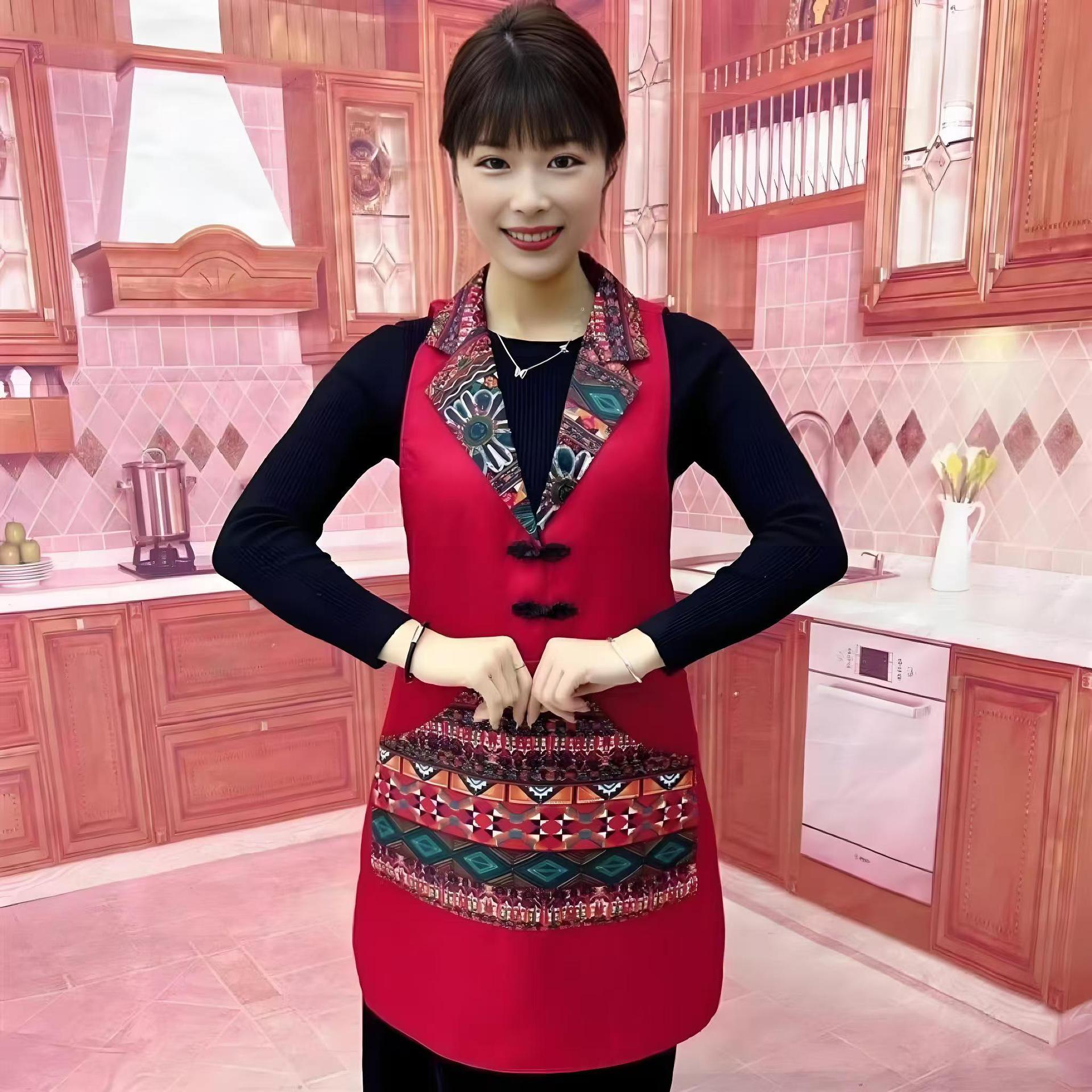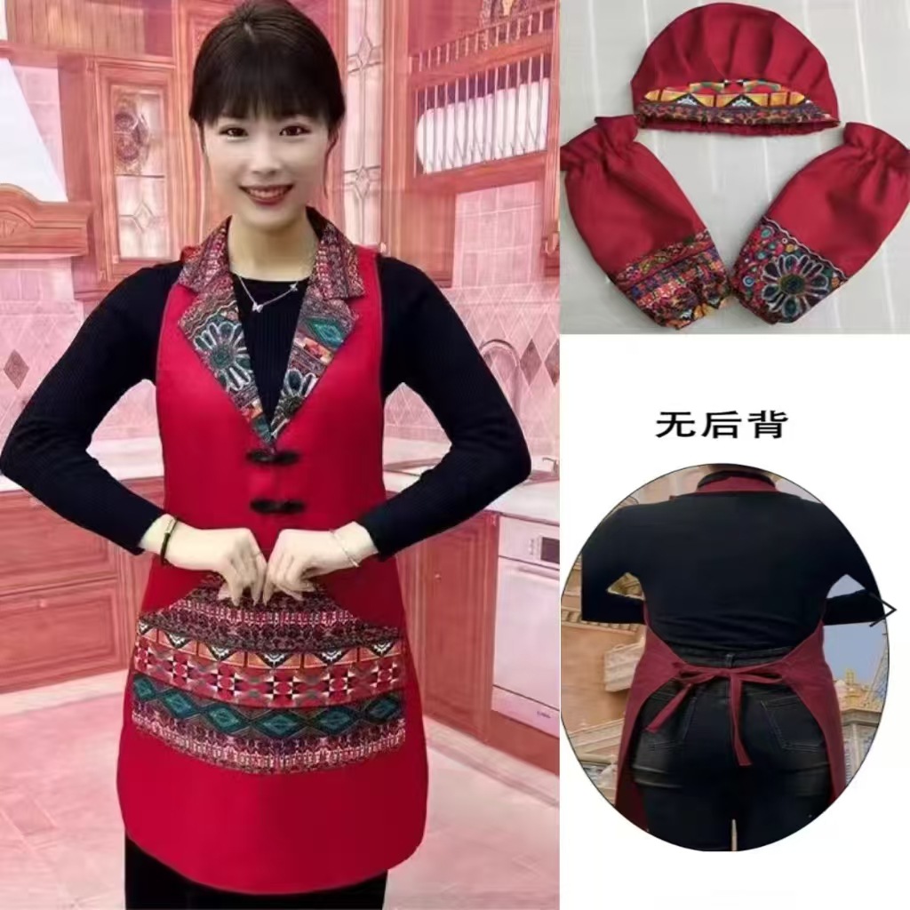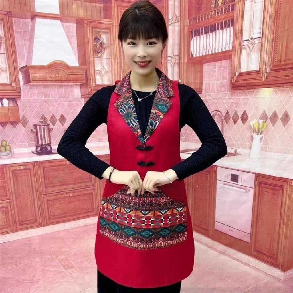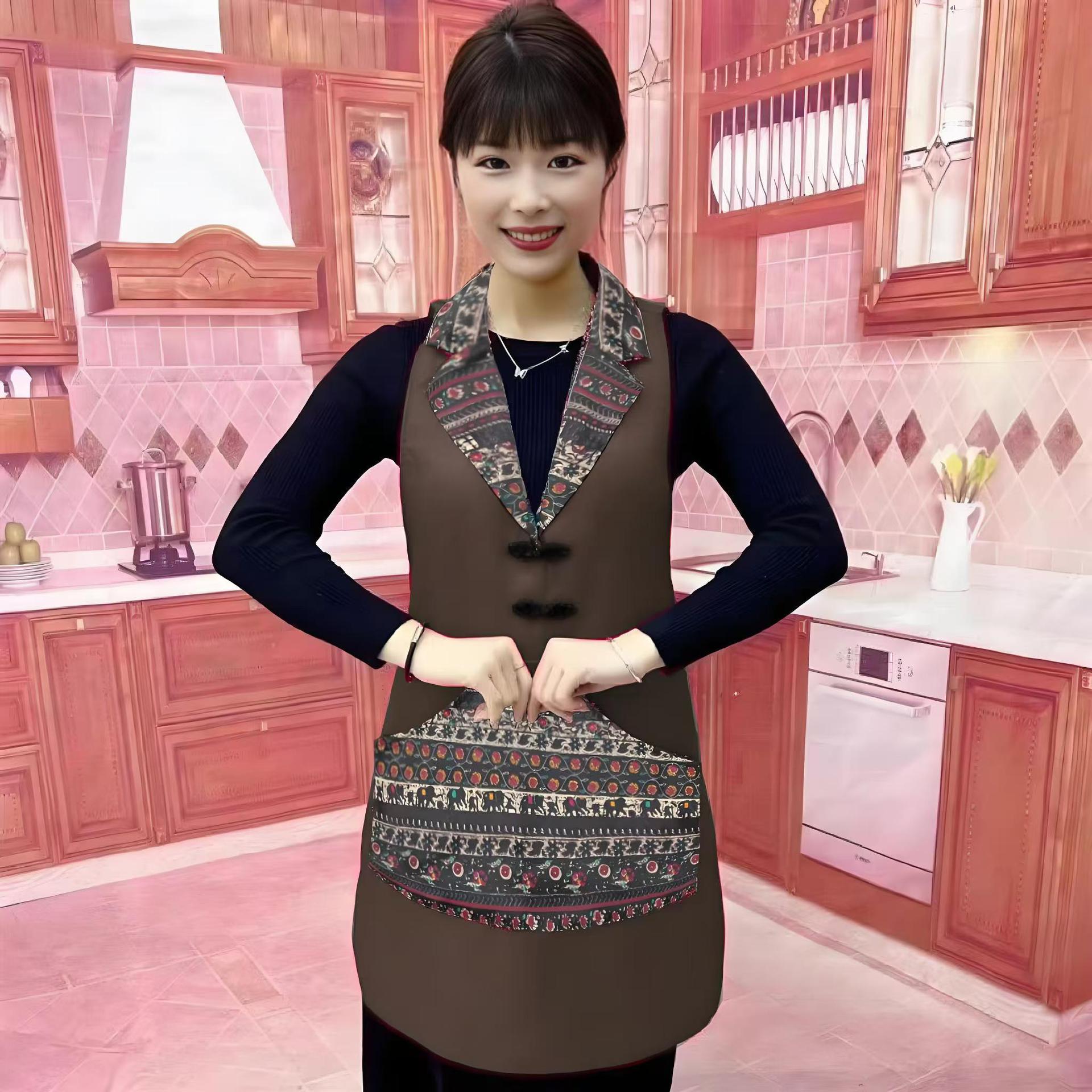 w3 등이 없는 클래식 민족풍 신상품 라펠 앞치마 정장 칼라 전골 요리 주방 식당 작업복스토어 가기