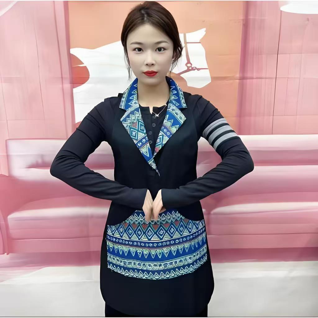 w3 등이 없는 클래식 민족풍 신상품 라펠 앞치마 정장 칼라 전골 요리 주방 식당 작업복