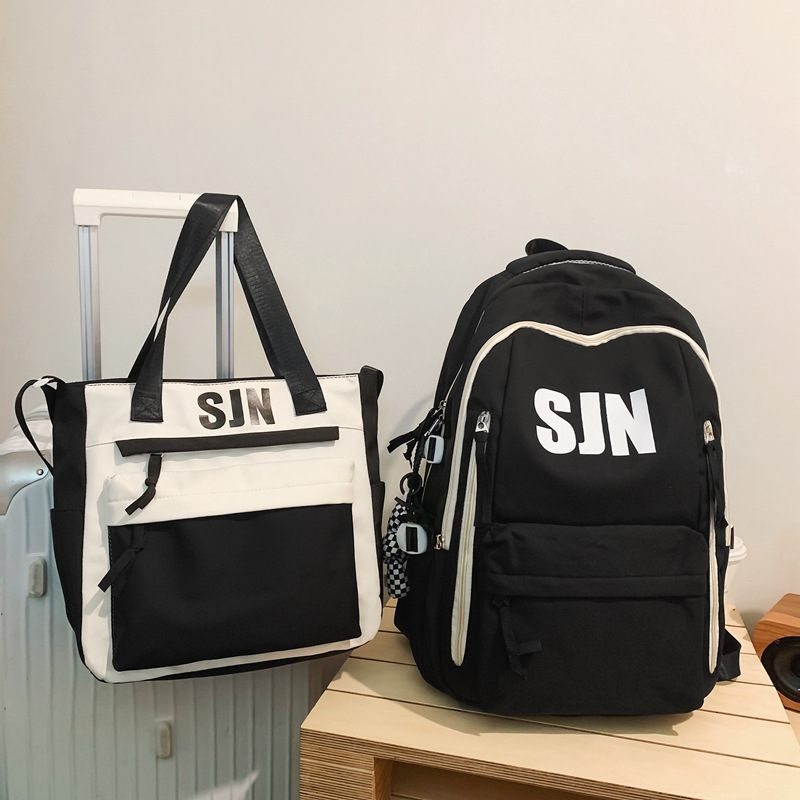 일본 스타일 간단한 패션 배낭 2024 여름 새로운 도착 고등학교 가방 대학 스타일 편지 배낭스토어 가기