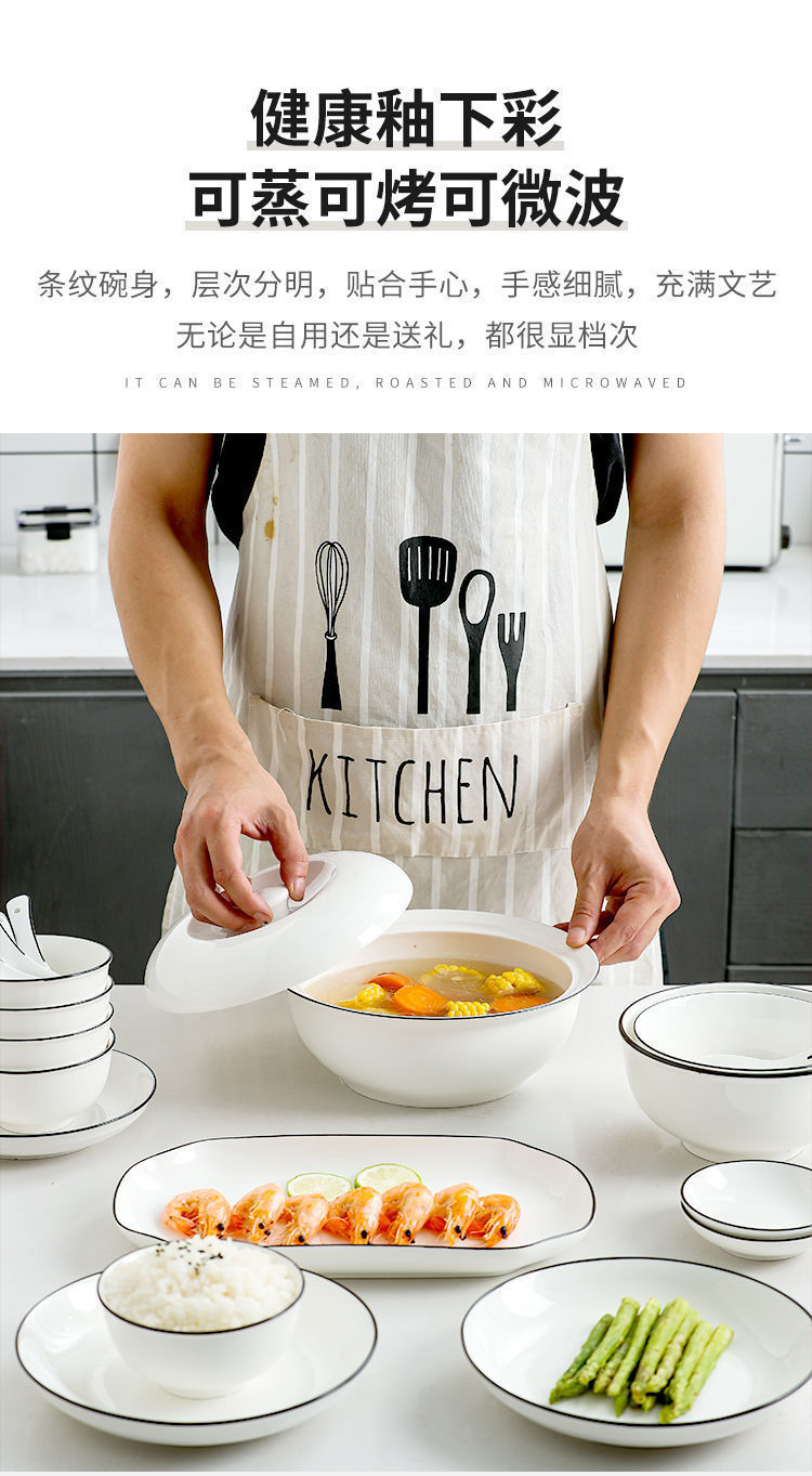 일본식 전자 레인지 요리 세트 Jingdezhen 가정용 식기 북유럽 세라믹 그릇 젓가락 접시 식탁 작은 수프 그릇