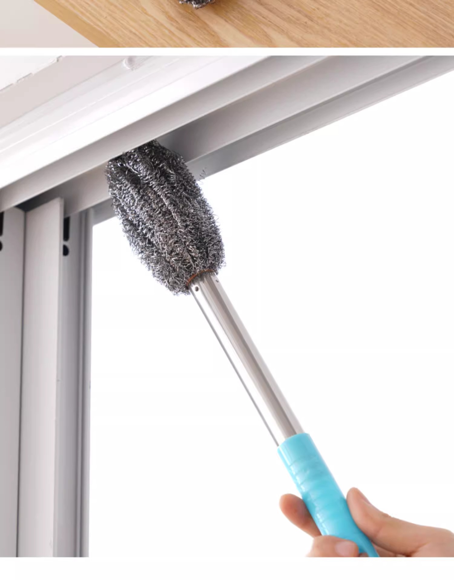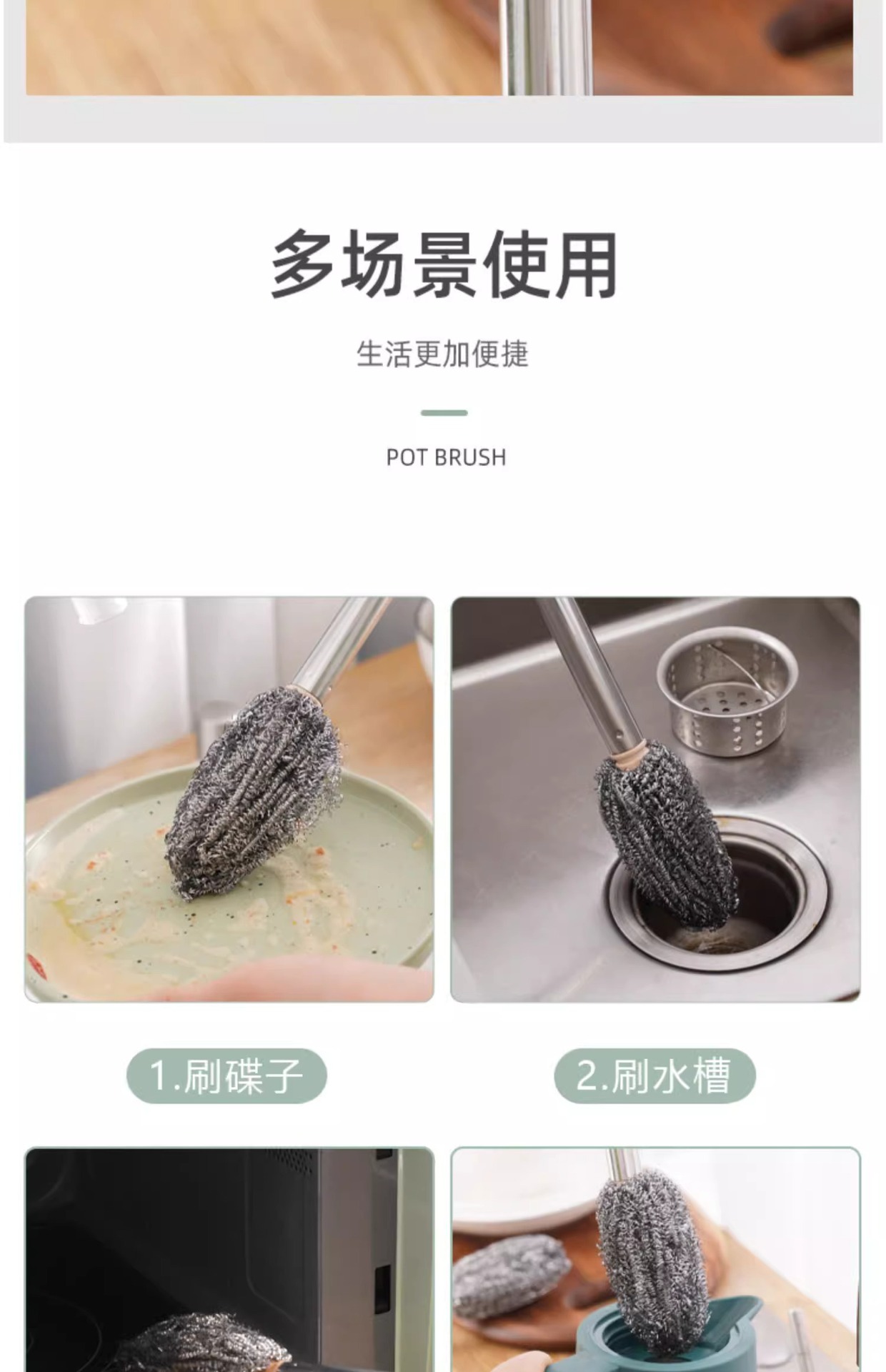 긴 손잡이 스틸 와이어 볼 브러시 긴 막대 세척 냄비 브러시 청소 브러시 주방은 손을 손상시키지 않습니다 설거지 접시가 스토브 청소에서 떨어지지 않습니다.스토어 가기