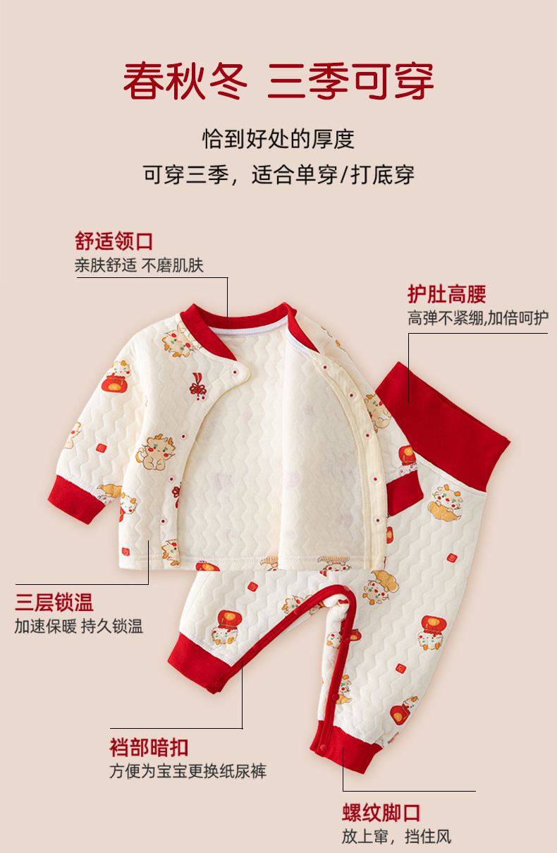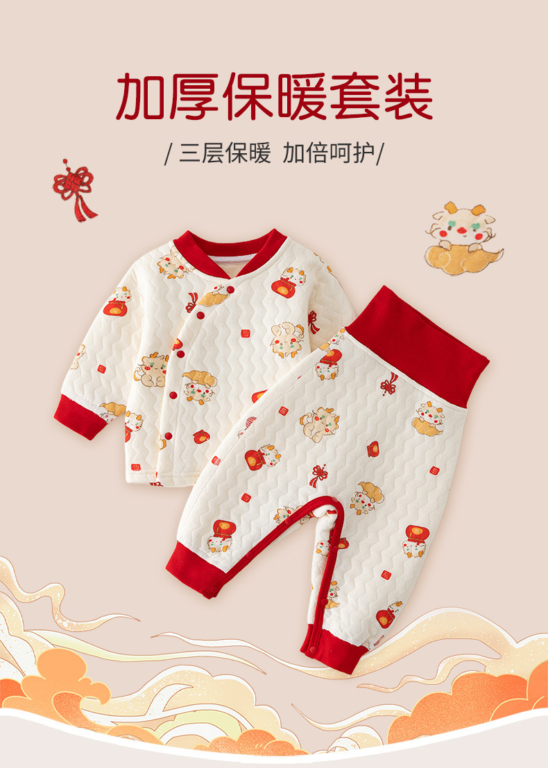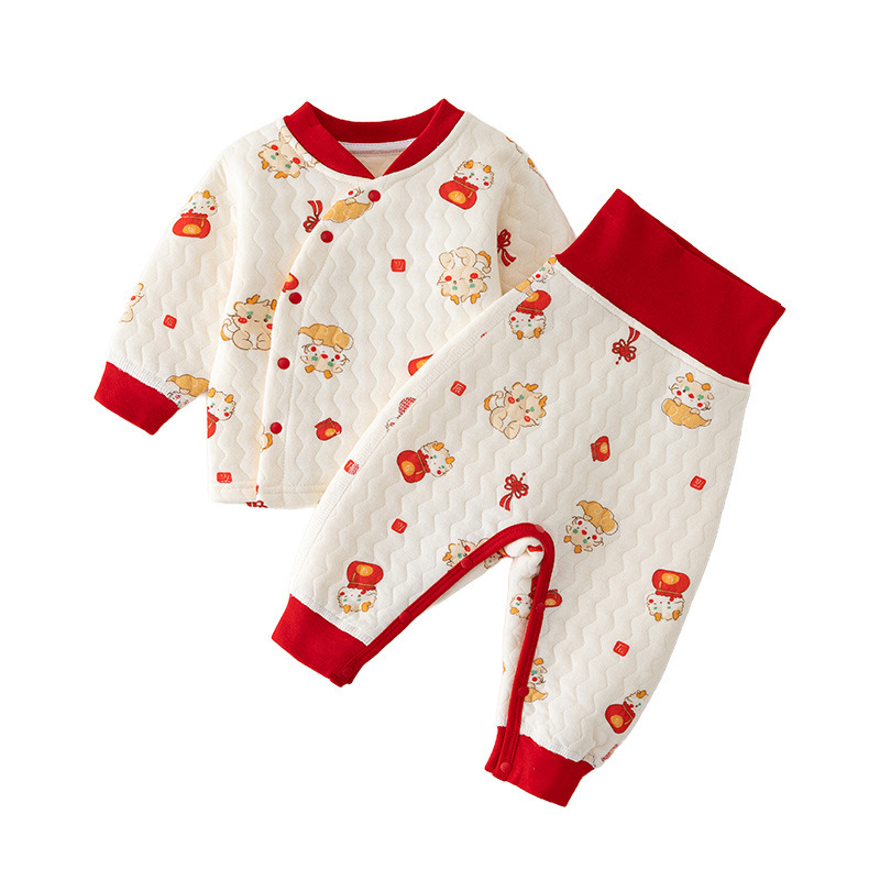 아기 옷 따뜻한 세트 봄 가을과 겨울 신생아 퀼트 속옷 스냅 크로트치 아기 높은 허리 배꼽 보호